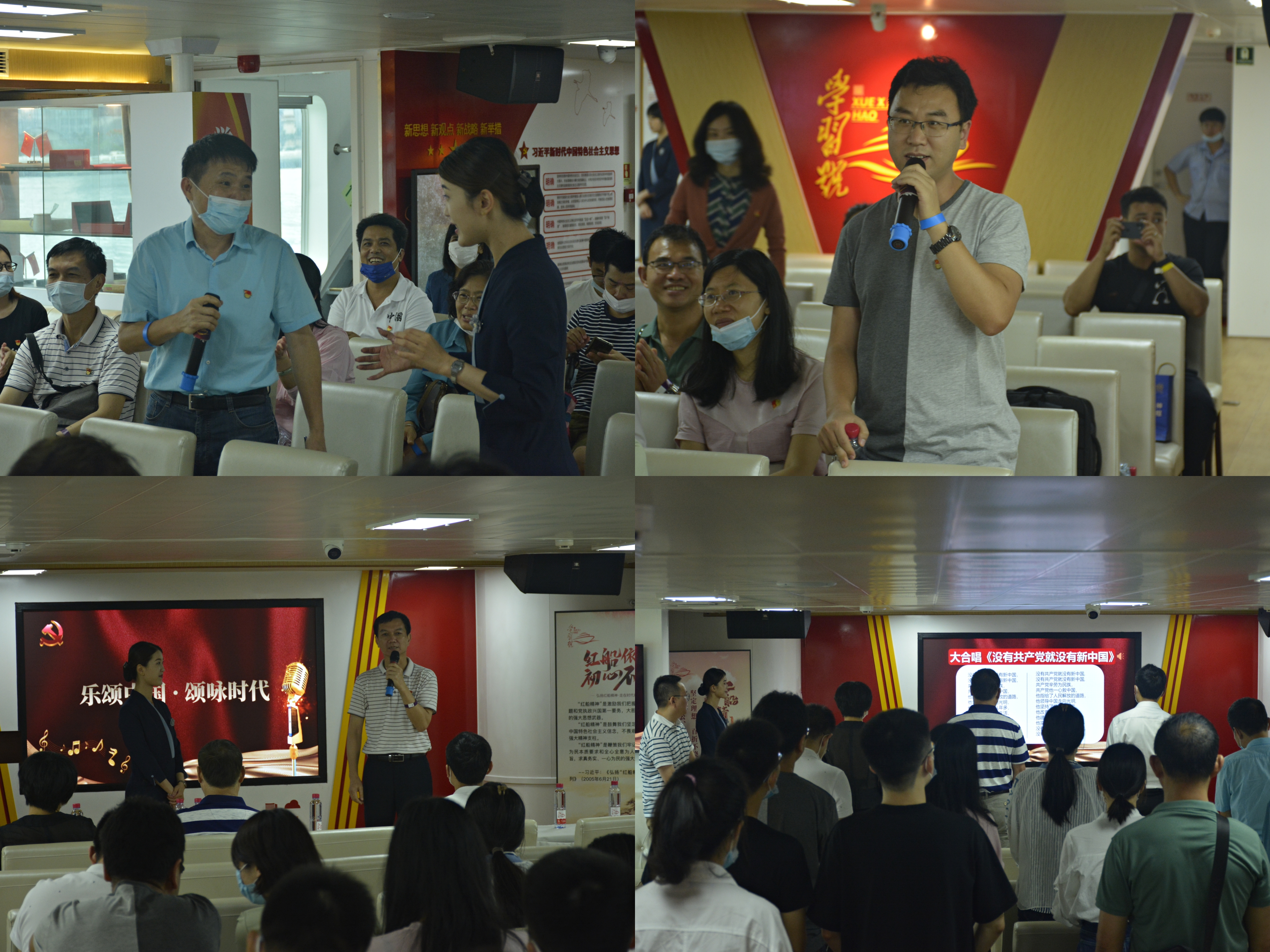 “学习号”参观的压轴环节是“猜唱红歌”,党员们争先恐后举手抢答,看画猜红歌、唱红歌,氛围热烈。凭借形象传神的图片,党员们接连猜中《学习雷锋好榜样》、《团结就是力量》等歌曲并唱响了激荡人心的旋律,现场欢声笑语,掌声不断。最后,全体党员齐唱《没有共产党就没有新中国》,将本次活动推向高潮。