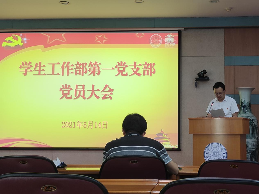 部长、支部书记李峰和支部党员代表林智敏分享学党史心得。李峰指出,党史学习教育要落到实处,将理论知识用在学生工作的实践中,将学习成果用在为学生办实事的探索中。他表示,要通过党史学习教育不断提升学生工作水平,结合学生工作部(处)的优良传统,明确目标,坚定前行。林智敏带领大家回顾了“党史上的今天”,他表示,今后要加强自主学习,在经典中学党史,在党史中学经典,忆党史、守初心、担使命。