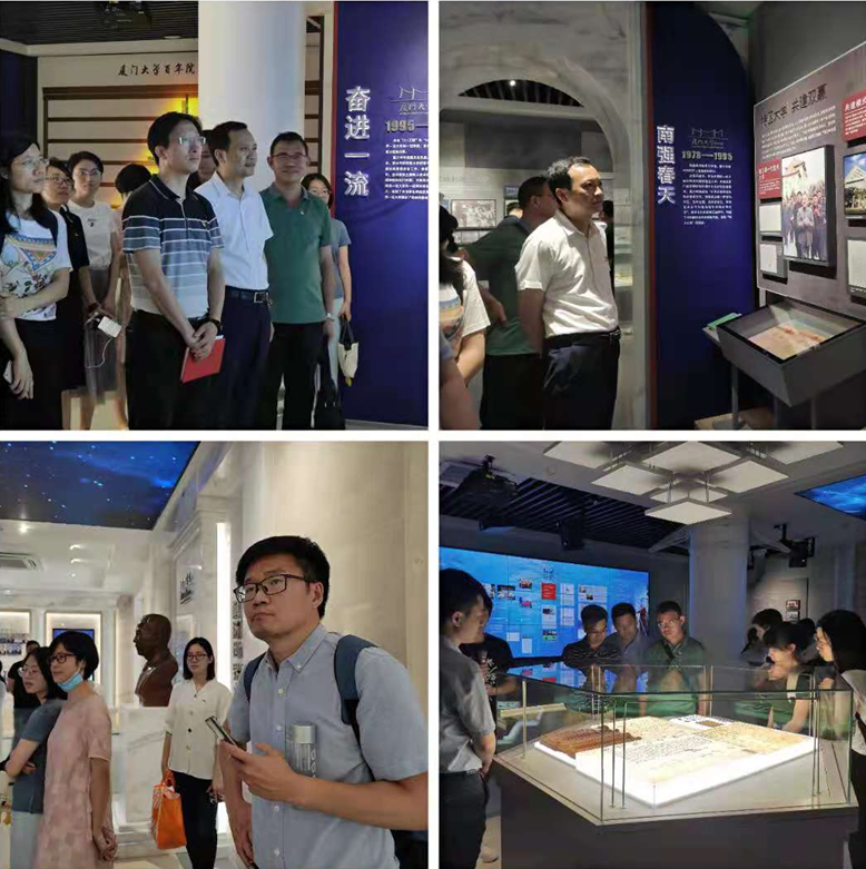 随后,支部党员前往校史馆参观百年校史展,回顾厦大百年征程,感悟校主陈嘉庚先生教育兴国的初心。改建后的校史馆,以崭新的视角重新梳理了厦大百年校史,充分运用了嘉庚建筑、厦大蓝、嘉庚红等厦大元素,打造厦大专属的独特意蕴,描绘了我校一个世纪以来教育兴国、立德树人的宏伟画卷。支部党员从“爱国、革命、自强、科学”四种精神的光影秀中感受百年厦大的厚重;从“厦大初创、内迁长汀、人民新厦大、南强春天、奋进一流”五个主题内容的展示中体会百年厦大的辉煌。全体党员纷纷表示,要将嘉庚精神与新时代的历史使命相结合,不忘初心、砥砺前行,落实立德树人的教育精神,为师生办实事,承担起作为学生健康成长的指导者和引路人的责任。