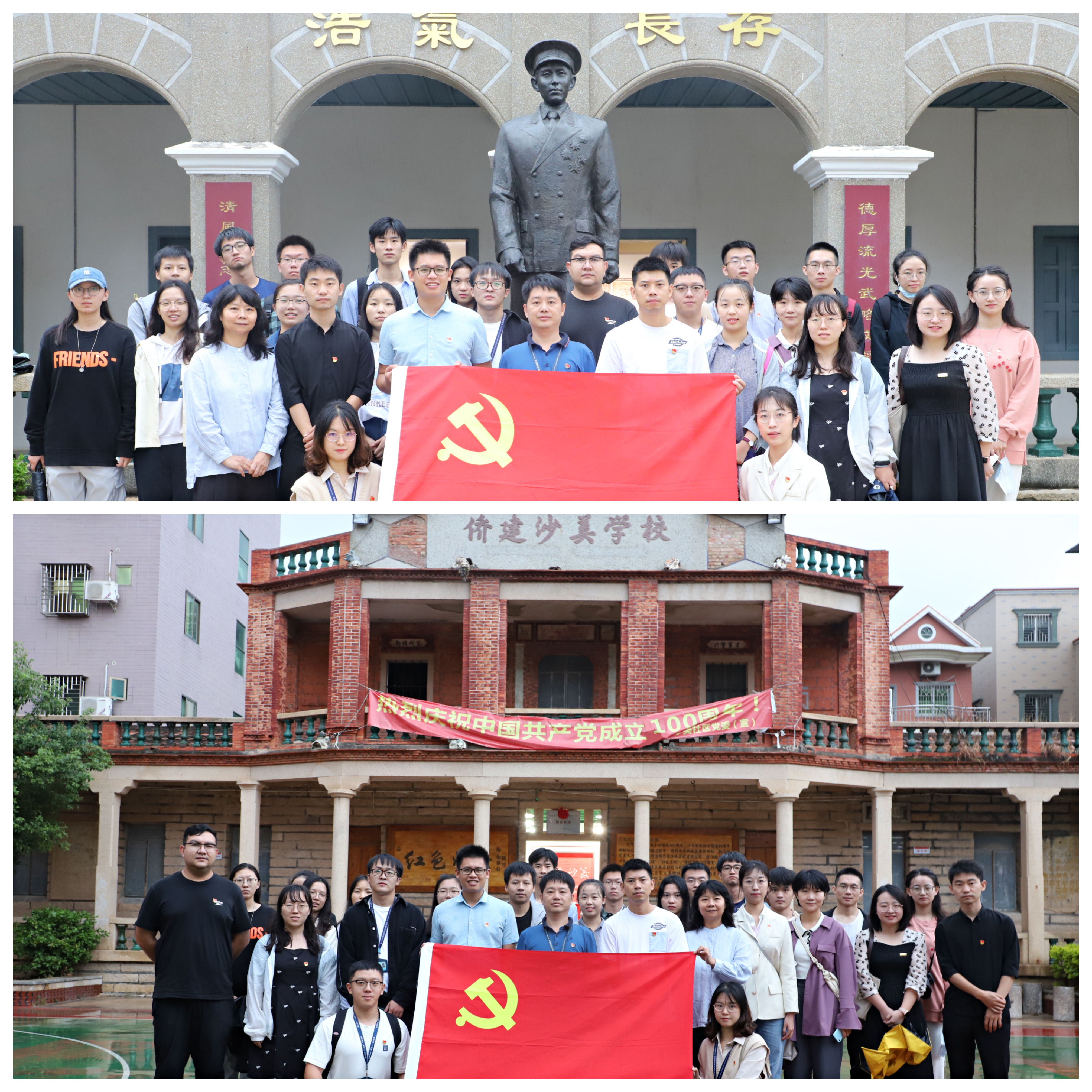 随后,师生党员们集体参观了沙美村农民协会旧址,重温了大革命时期沙美村农民协会反帝、反封建、反剥削斗争的光辉历史。在农民协会旧址的旁边是沙美学校旧址,现如今成了红色沙美纪念馆,这里不仅是农民协会的活动据点,更是共产党人创办平民夜校、开展革命活动的重要场所。沙美学校曾先后获得陈嘉庚先生等爱国华侨的资助,身为学校创办人之一的彭友圃也将校主陈嘉庚先生的教育理念引进了沙美学校。“教育为立国之本,兴学乃国民天职”,党员朱祎濛说道,“沙美小学正是在一代代和陈嘉庚先生拥有相同理念的爱国华侨、革命战士的帮助与支持下,走过了风雨兼程的百年。沙美小学也许只是陈嘉庚先生倾资办学的一个小部分,却让我看见了陈嘉庚先生对于国家教育的重视,对于中华民族的复兴和崛起的强烈渴望。”