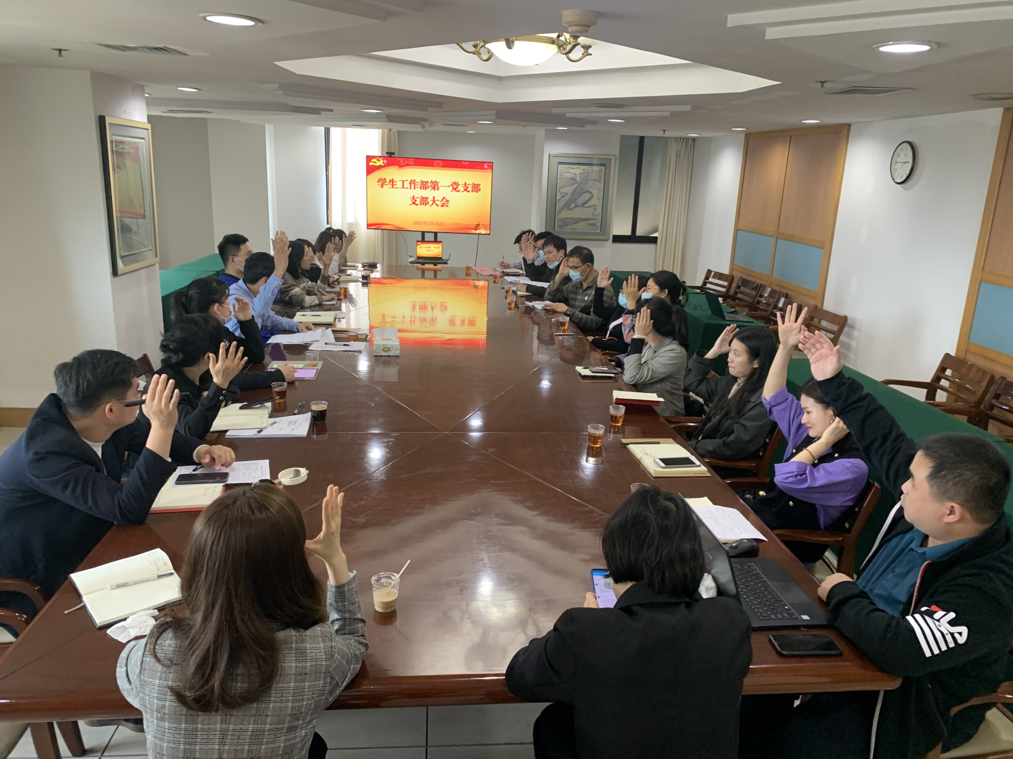 5月17日,学生工作部第一党支部于颂恩楼1609会议室召开党员大会,开展支部委员会委员补选和理论学习活动。会议由支部书记、部长李峰主持。