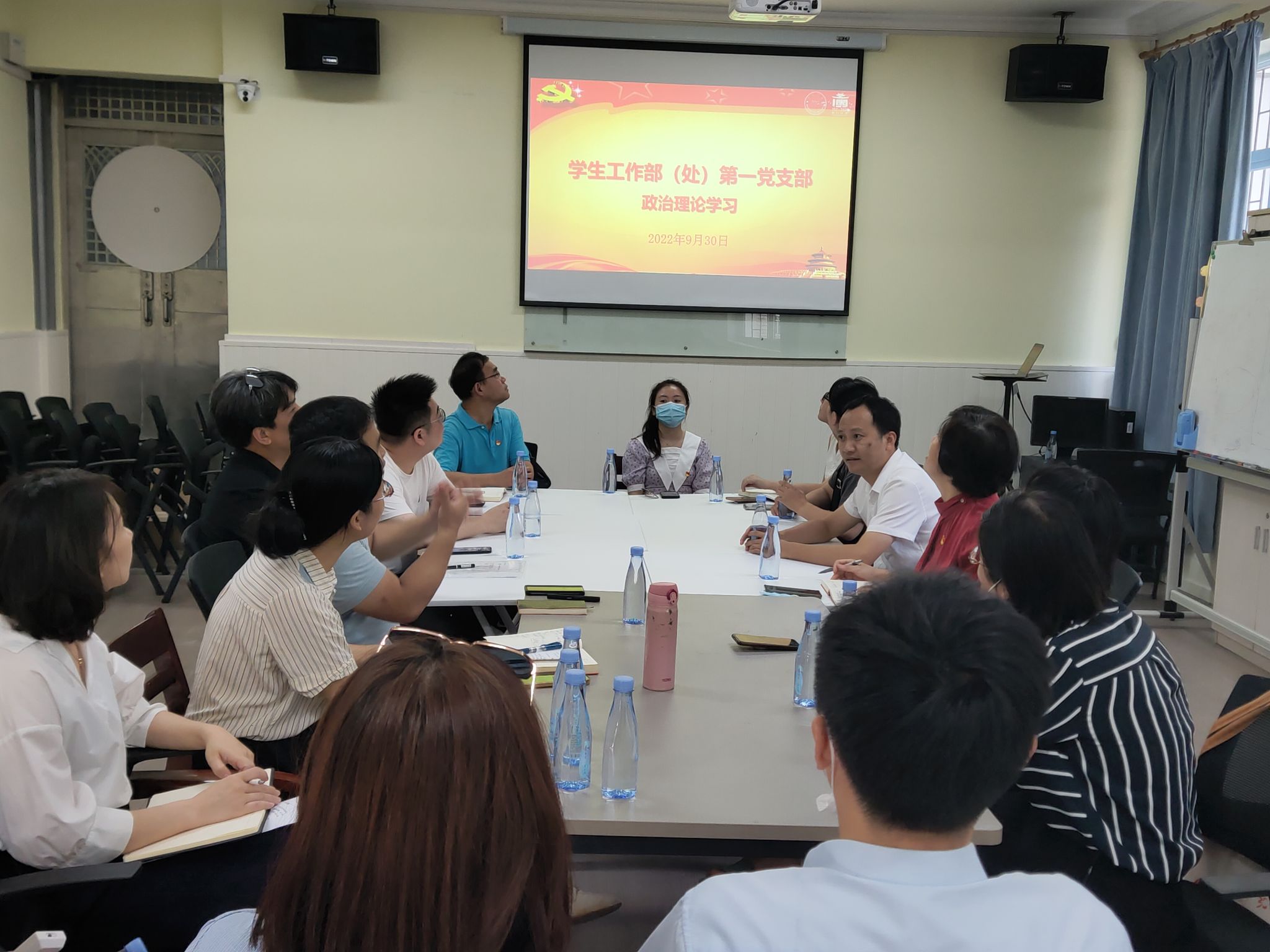 9月30日,学生工作部第一党支部在南光四心理中心活动室开展政治理论学习。活动由支部书记、部长李峰主持。