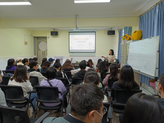 活动伊始,心理咨询与教育中心(以下简称心理中心)的陈梅香老师介绍了“阳光心田”项目的由来以及园艺心理疗法的基本概念,让参与活动的全体党员了解园艺治疗对提升心理健康的效果和意义。随后,心理中心邀请到景观造园师郭宝雪为大家讲解了植物扦插的各类方法,并做了现场演示。