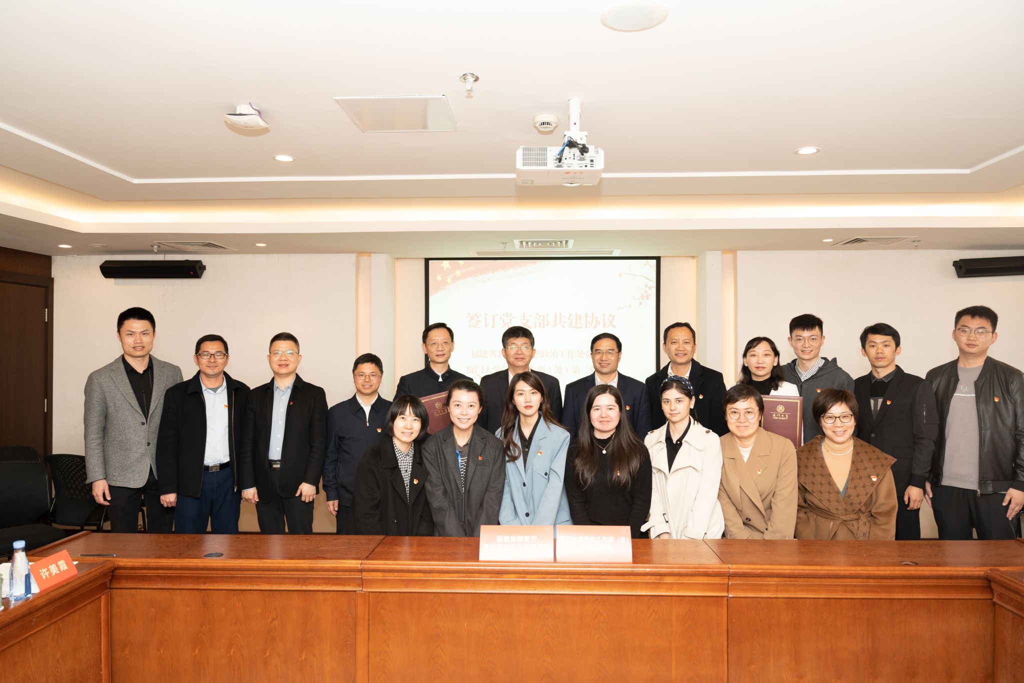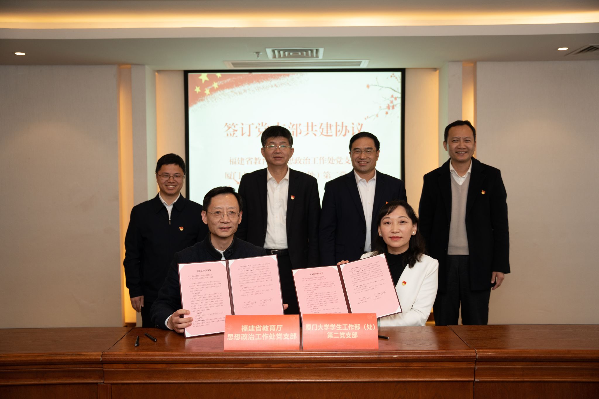据悉,福建省教育厅思想政治工作处党支部为省直机关示范党支部、连续四年获福建省教育厅“五星党支部”;厦门大学学生工作部(处)第二党支部为第二批“全国党建工作样板支部”、连续三年获厦门大学“机关党建工作示范点”。此前,双方已就支部共建事宜多次召开工作座谈会,共同参与策划、组织、开展近日在我校举办的全省高校“一站式”学生社区综合管理模式建设工作推进会暨第二期全省高校思政大讲坛,并在会议期间实地考察了翔安校区“一站式”学生社区建设情况。双方一致表示,将以党支部结对共建为契机,密切工作联系,加强互动交流、跨区联动,推动党的建设与事业发展深度融合,带头践行“一融双优”,以高质量党建引领推动福建省高校思想政治教育工作高质量发展。