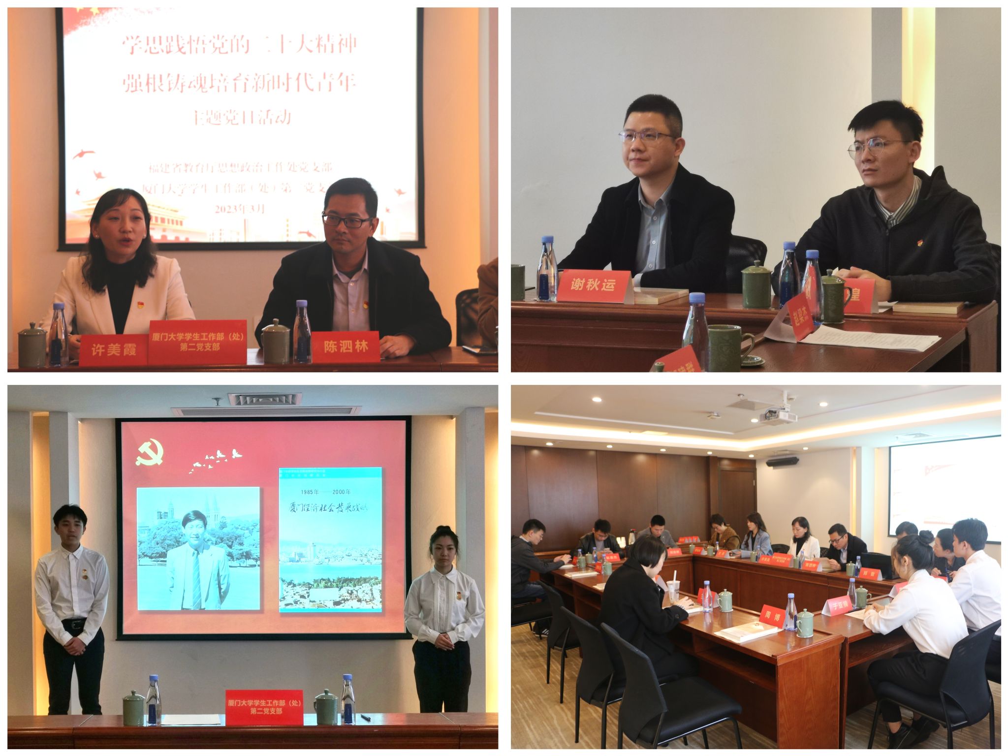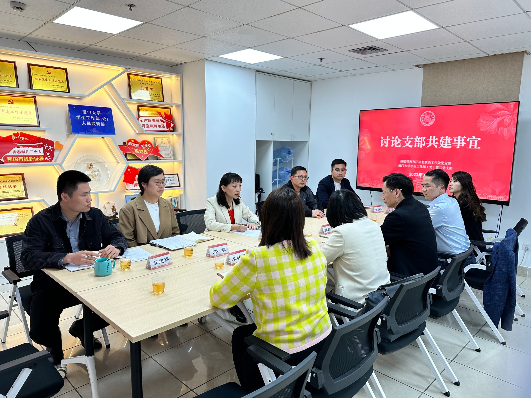 会上,许美霞还汇报了2023年福建省教育厅思想政治工作处党支部和厦门大学学生工作部(处)第二党支部共建工作计划。经充分讨论,双方拟以线上线下相结合的方式经常性开展政治理论学习和主题党日活动,聚焦即将在全党开展的主题教育开展系列活动,落实省委“深学争优、敢为争先、实干争效”行动部署,积极开展调查研究,并围绕全省高校大学生思想政治引领、辅导员队伍建设工作、“一站式”学生社区综合管理模式建设、大学生社会实践等方面开展深入交流与合作。