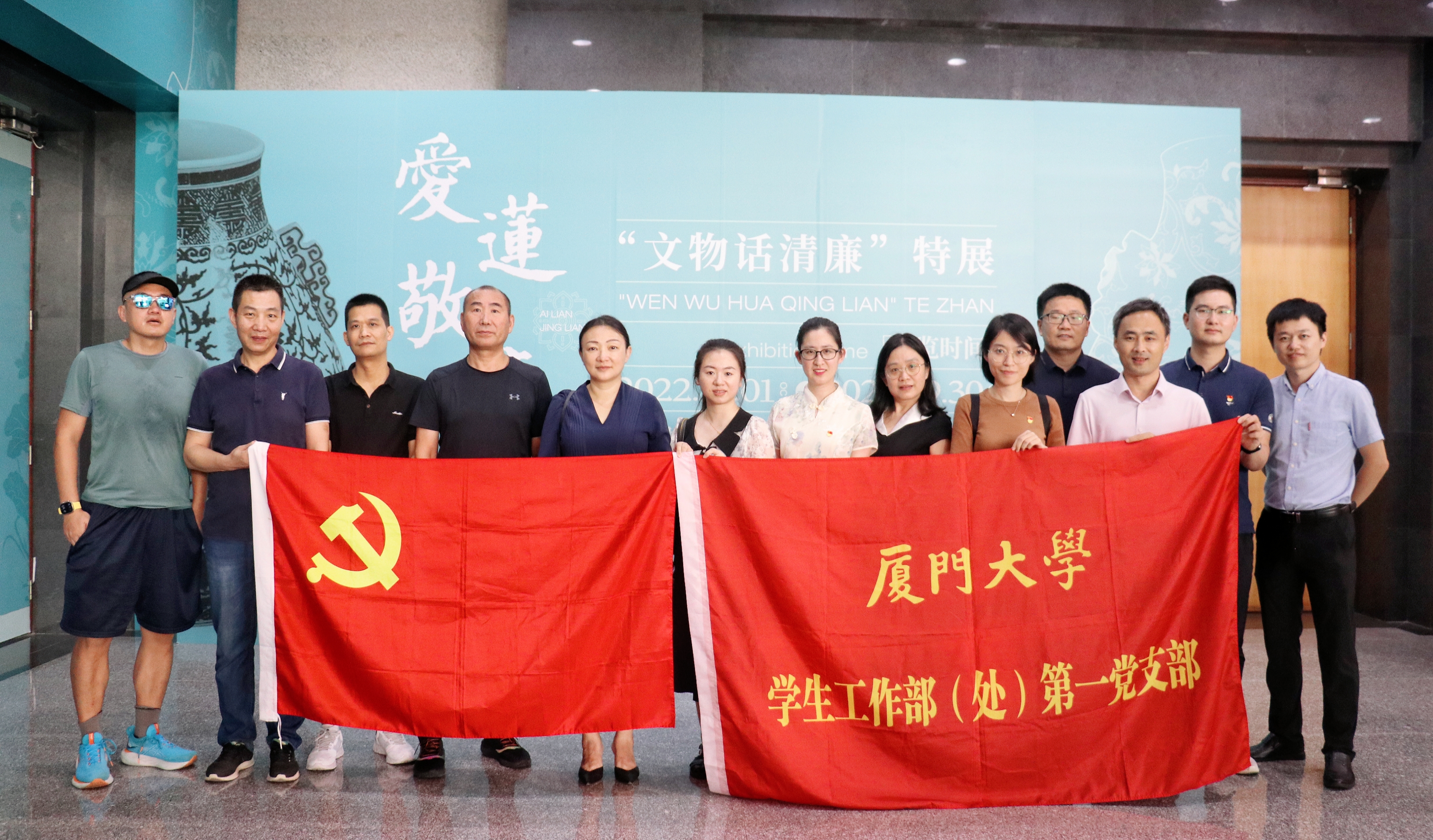 为扎实推进学习贯彻习近平新时代中国特色社会主义思想主题教育走深走实,加强新时代高校廉洁文化建设,7月7日下午,学生工作部第一党支部联合马克思主义学院军事教研室教工党支部开展“固定党日+”活动,带领党员前往厦门市博物馆参观“爱莲敬廉——文物话清廉”特展,并与厦门市博物馆第一党支部开展座谈交流。