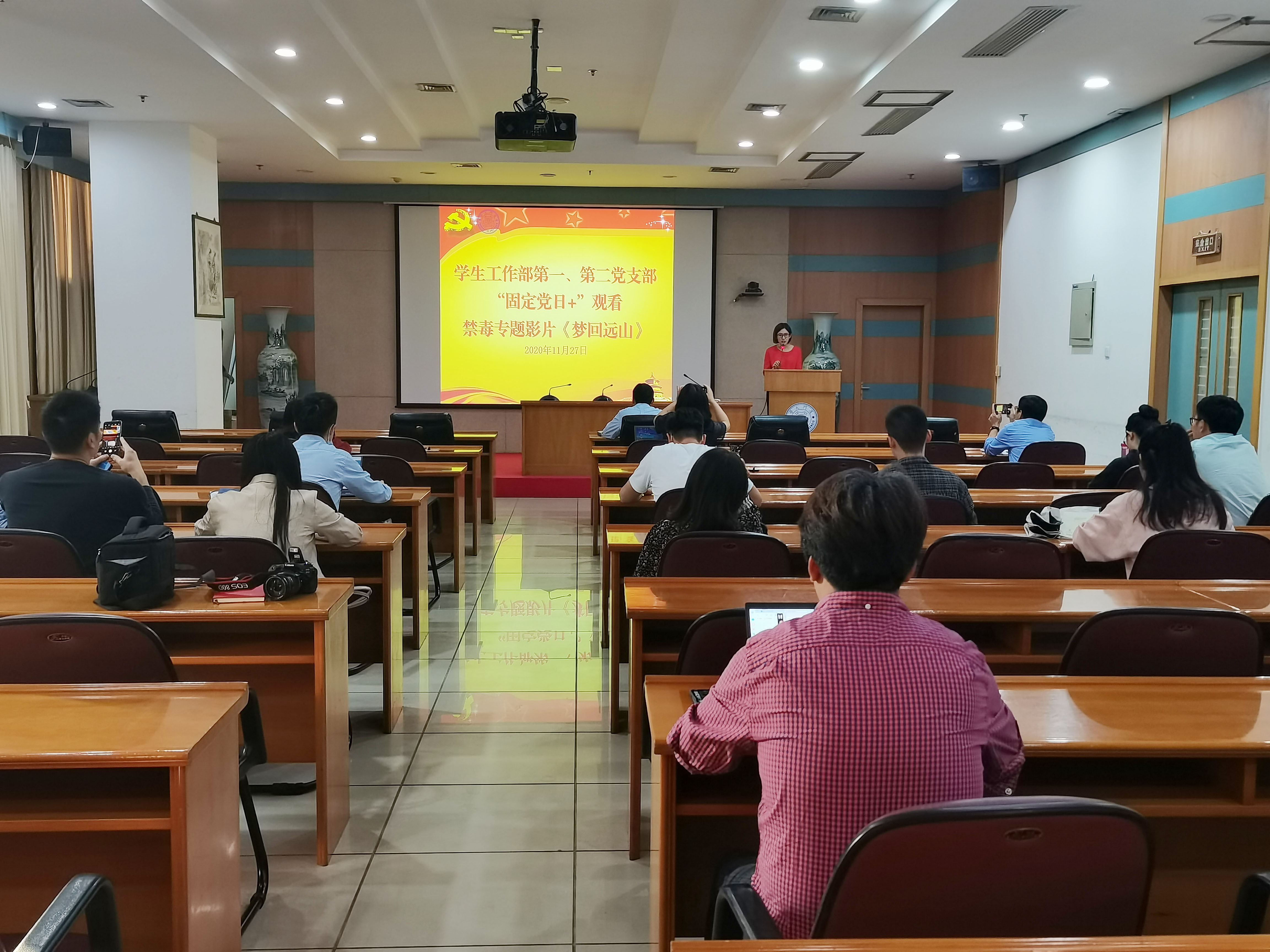 为进一步提升支部党员识毒、防毒、拒毒的能力和意识,根据中央、省委部署和学校通知要求,11月27日下午,学生工作部(处)第一、第二党支部于颂恩楼220报告厅联合开展“固定党日+”活动,集中观看禁毒专题影片《梦回远山》。