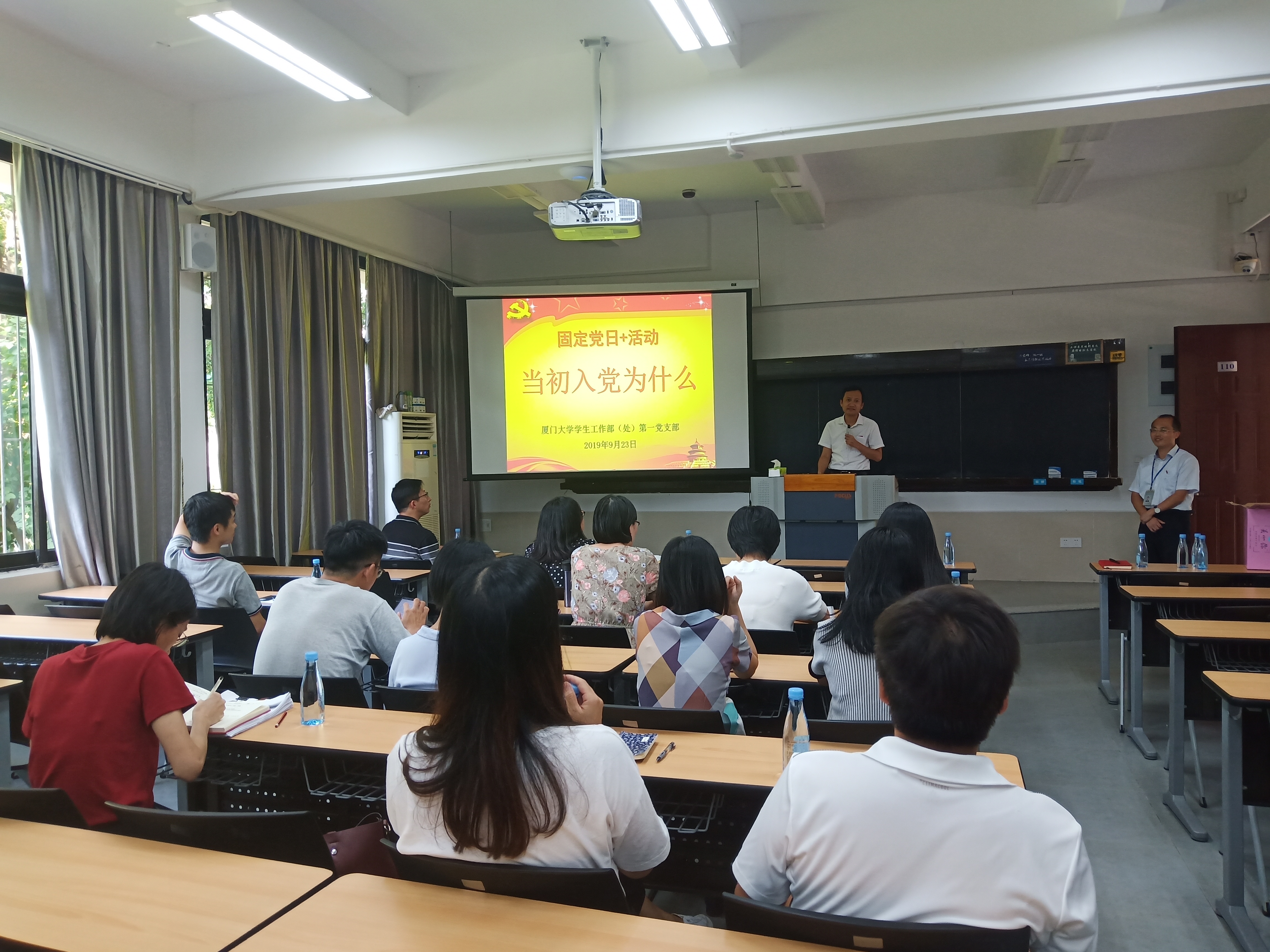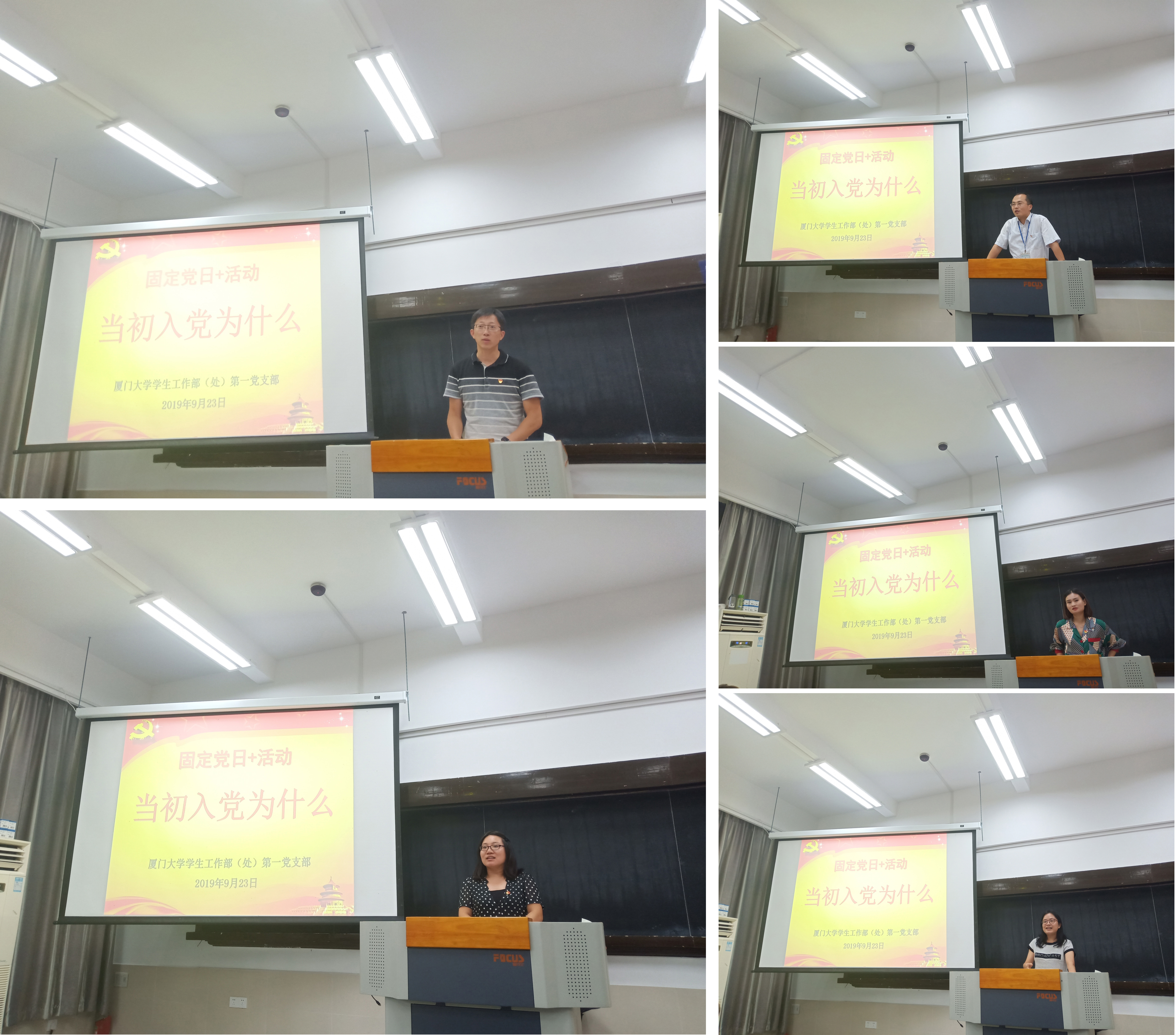 9月23日下午,学生处第一党支部结合“不忘初心、牢记使命”主题教育,于南强二110教室开展了以“当初入党为什么”为主题的“固定党日+”活动。19名支部党员和1名入党积极分子参加了本次活动。活动由支部书记、部(处)长李峰同志主持。