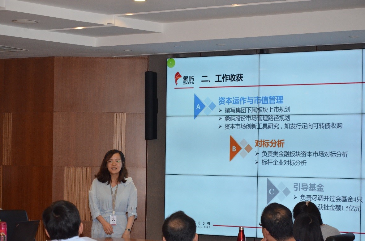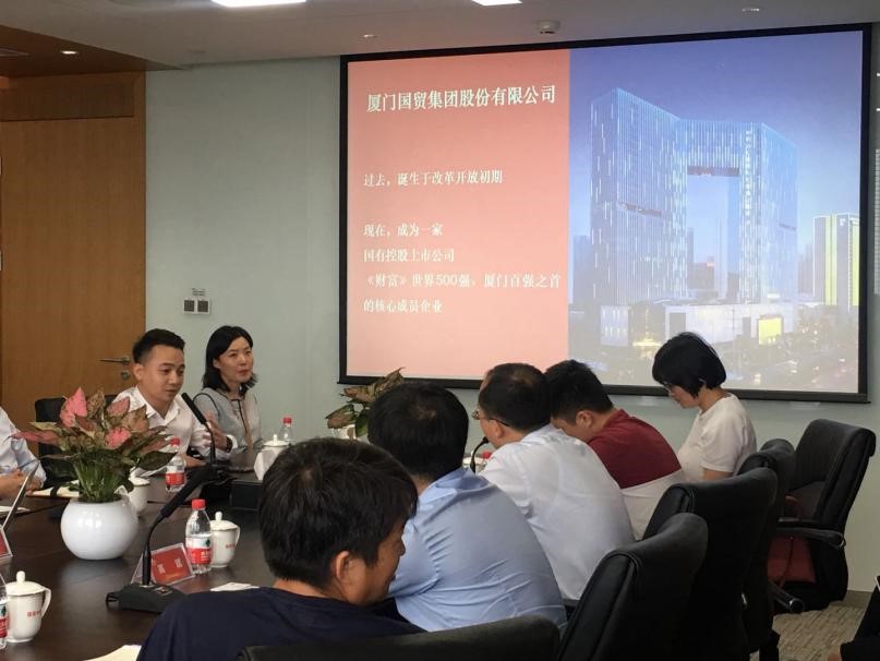 5月29日上午10点整,一行人到达位于湖里区海峡金融中心的国贸股份新址国贸中心。活动开场由国贸股份人力资源部孔繁星总经理主持,他首先介绍了国贸股份副总裁李云山以及各事业部人力资源负责人。李云山副总裁还对国贸股份的发展历程、“3+X”主营业务、员工待遇、企业文化进行了深入、详细的介绍。国贸股份诞生于改革开放初期,其主营业务为供应链管理、房地产管理、金融服务三大项。发展至今,国贸股份已经成为了世界500强核心成员企业以及中国上市公司50强企业,不仅世界排名靠前,集团还十分注重员工权益,充分给予新员工机会和晋升发展途径,除此之外,集团还关注企业文化,经常举办员工俱乐部和组织活动。李云山副总裁对于国贸股份如数家珍,与会人员也是全神贯注、认真聆听。