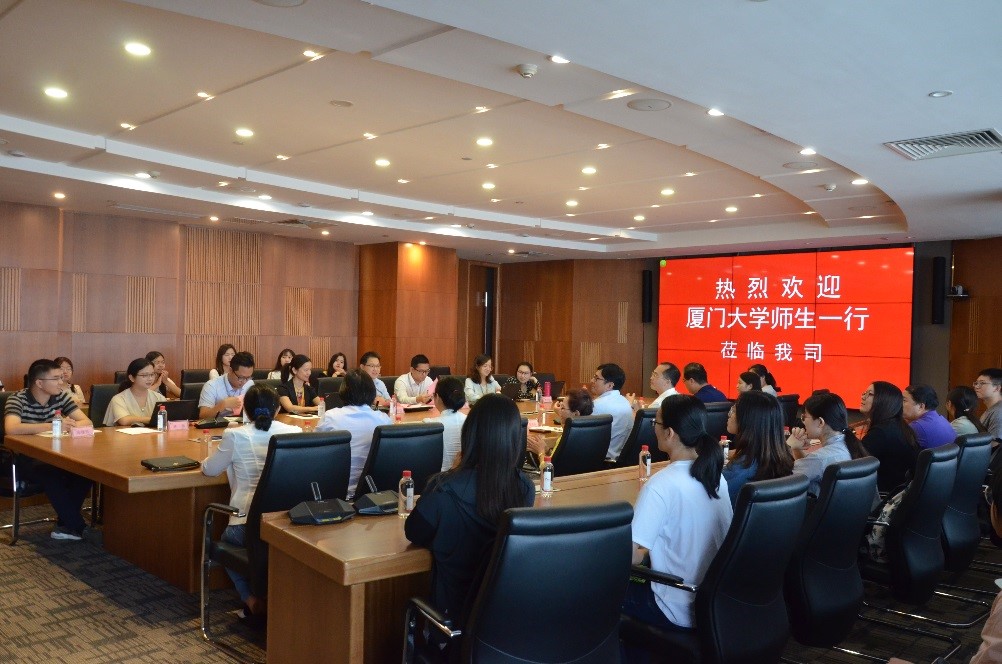 5月30日上午8点30分,在学生处副处长陈泗林老师的带领下,一行人从科学艺术中心乘车出发,随后抵达象屿大厦。象屿集团人力资源总监肖智磊致辞,热情洋溢地叙述了象屿集团与厦门大学的渊源,对厦门大学师生的到访表示欢迎。象屿集团人力资源部经理汤清对象屿集团的发展历史、企业文化、平台与机会、人才培养体系、现员工成长训练营、员工发展空间和员工俱乐部等情况的进行了介绍。象屿集团于1995年成立,经过象屿1.0,象屿2.0,象屿3.0三个阶段的发展,从起步成长,到高速发展,再到整合转型,象屿集团筚路蓝缕,玉汝于成,现已跃居世界500强。作为国有企业,象屿集团不忘初心,牢记使命,形成了擎档期、凝合力、勇担责、人为本的特色党政文化。