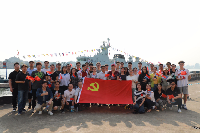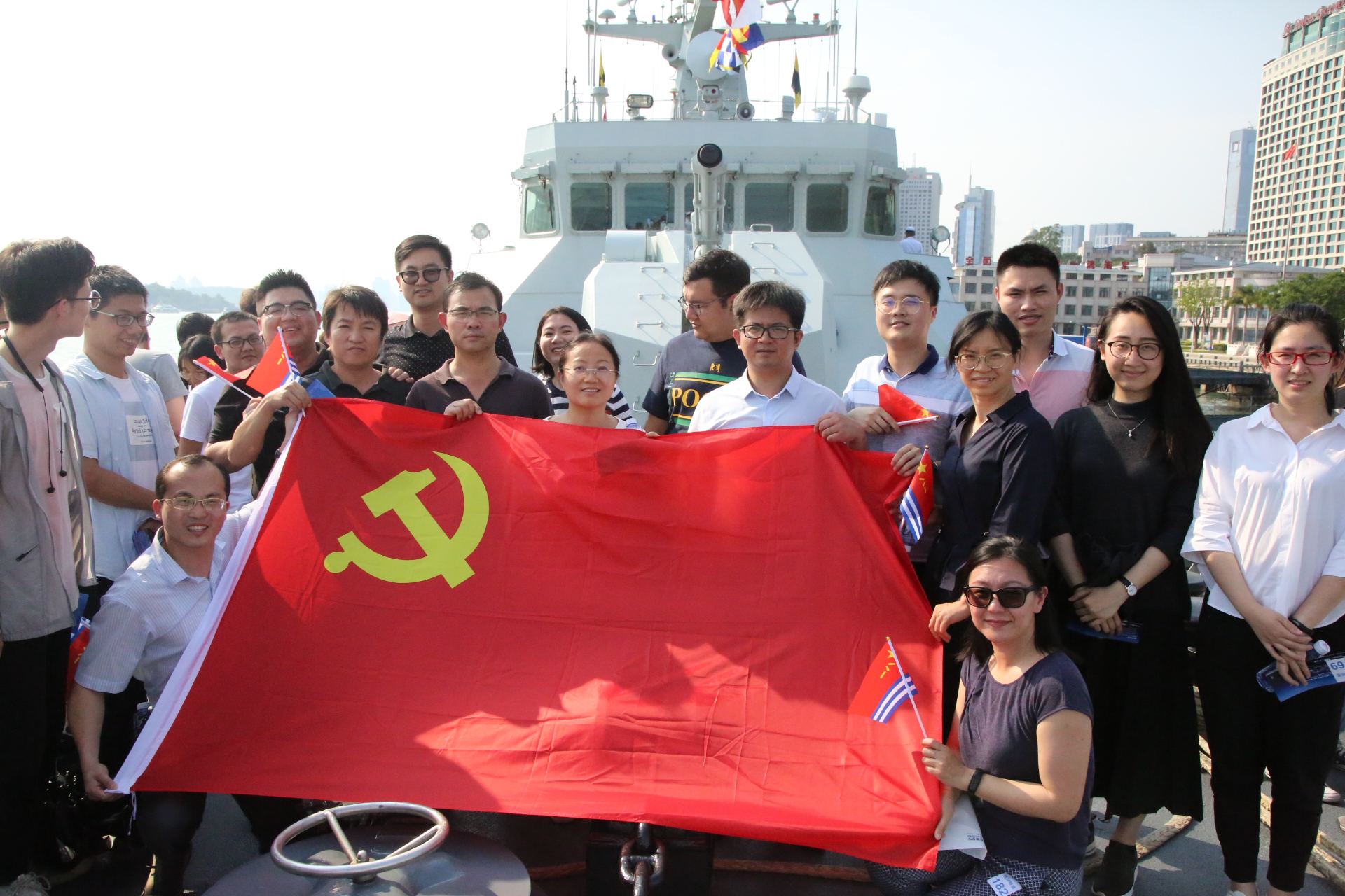 为庆祝海军建军70周年,加强学生处党员国防意识,加深干部队伍对海军现代装备的了解,4月23日下午15:00学生处第一、第二党支部与经济、数学、艺术、能源、生科、环生、海地等学院师生一道登上护卫舰宁德舰,参观学习海军先进舰艇装备。