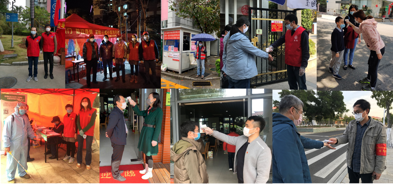 学院党委精心部署,在全面摸排师生员工所住社区的基础上,将厦门市内可参与社区防疫的教工党员组建成立“社区防疫临时党支部”,以“双报到”形式开展社区志愿服务。与厦门市新兴社区、新港社区等6个社区进行对接,将居住在以上社区的教工党员信息一一核对,同时动员带领全院党员师生踊跃参与所在社区防疫工作。学院党委委员、副院长侯亮主动前往厦港街道鸿山社区进行体温检测、信息登记等志愿服务,学院党委副书记张晴参加所在滨海街道上李社区防疫工作,并向业委会捐赠防疫资金、向物业一线人员献去爱心午餐,身先示范党员干部先锋作用。