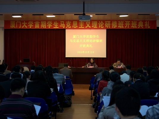 12月12日,我校首期学生“马克思主义理论研修班”开班,经过推荐选拔出的各学院60名学生骨干成为研修班首批学员。在12日上午举行的开班典礼上,校党委副书记陈力文作重要讲话,校党委常委、组织部部长白锡能为研修班特聘指导教师颁发聘书。宣传部、党校、学生工作部、校团委相关领导,各学院(研究院)党委(党总支)副书记出席典礼。学生处处长林东伟主持开班典礼。