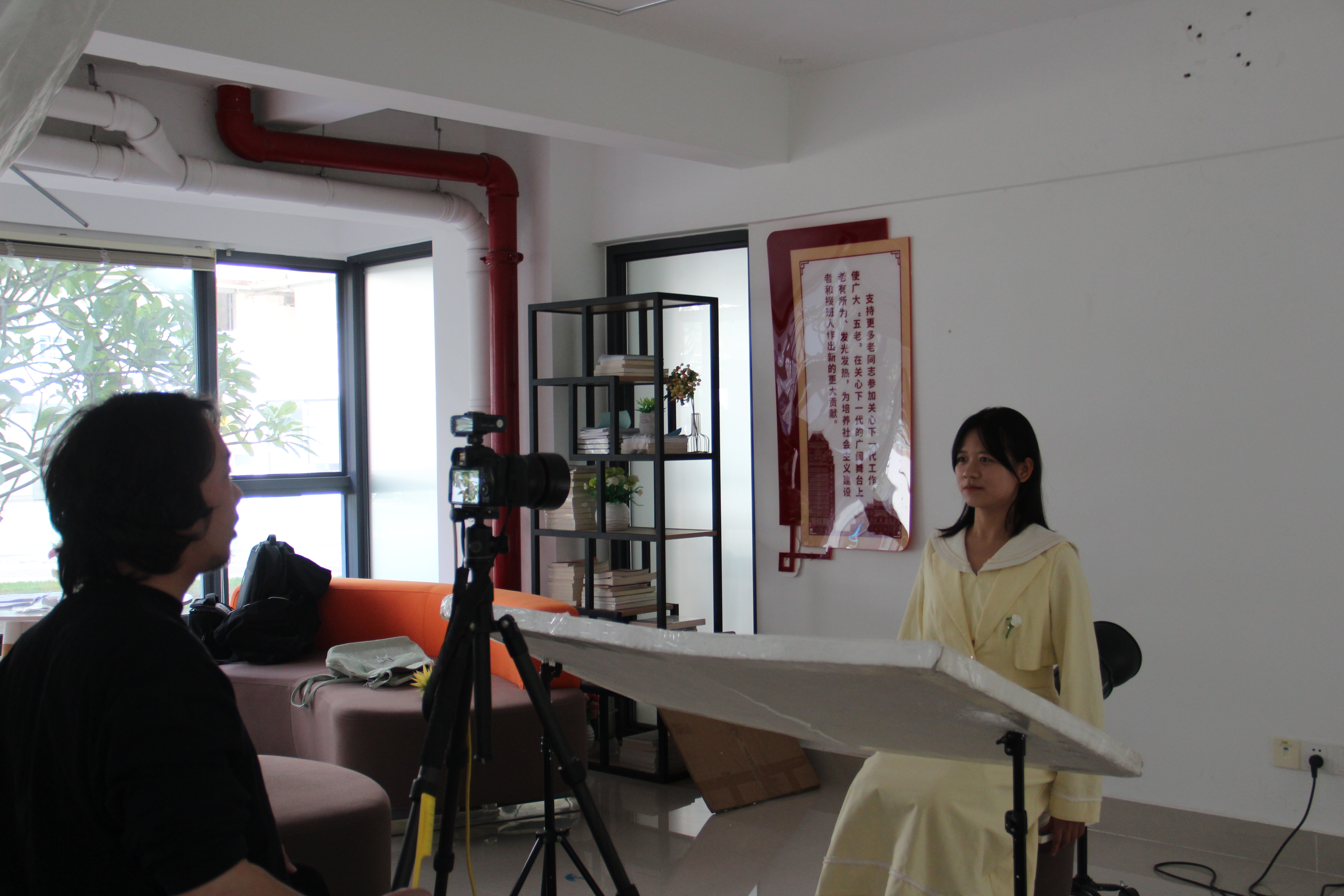 “肩膀放松,挺直腰板,这样看起来更精神。”摄影师一边调整灯光,一边指导大家的姿势与神态,鼓励大家展示良好的自信和活力。参与拍摄的同学们整理好着装,以清爽、阳光的状态在摄像机下定格自信从容、端庄大方的瞬间。拍摄完成后,工作人员将在后期为同学们寄送精修及纸版证件照。
