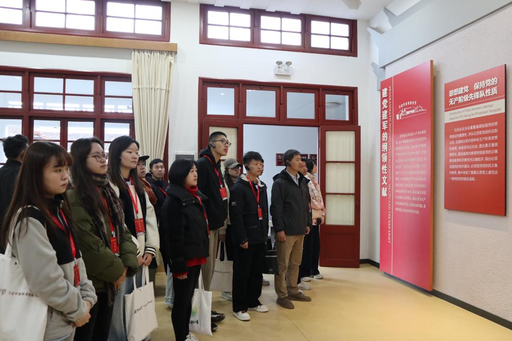 为深入学习贯彻党的二十大精神和习近平强军思想,12月14日-15日,厦门大学习近平强军思想学生研习班组织学员赴古田、长汀等地开展实践研学。马克思主义学院党委副书记刘晓峰带队,厦门大学武装部郑梅玲,马克思主义学院教师李皓、洪玲艳,学院团委书记侯佳君等参与指导实践活动。