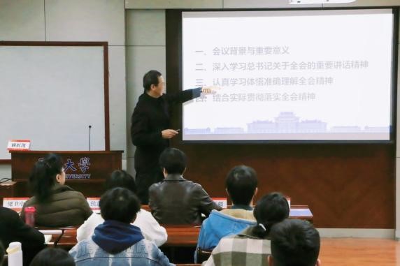 赖虹凯老师指出,党的二十届三中全会是在以中国式现代化全面推进强国建设、民族复兴伟业的关键时期召开的一次十分重要的会议。会上审议通过的《中共中央关于进一步全面深化改革、推进中国式现代化的决定》,科学谋划了围绕中国式现代化进一步全面深化改革的总体部署,是指导新征程上全面深化改革的纲领性文件,为党和国家事业发展指明了方向、提供了遵循。赖虹凯老师结合习近平总书记的重要讲话精神和重要文章,深入阐述了进一步全面深化改革、推进中国式现代化的主题、重大意义、总体要求、重要举措和根本保证等内容。