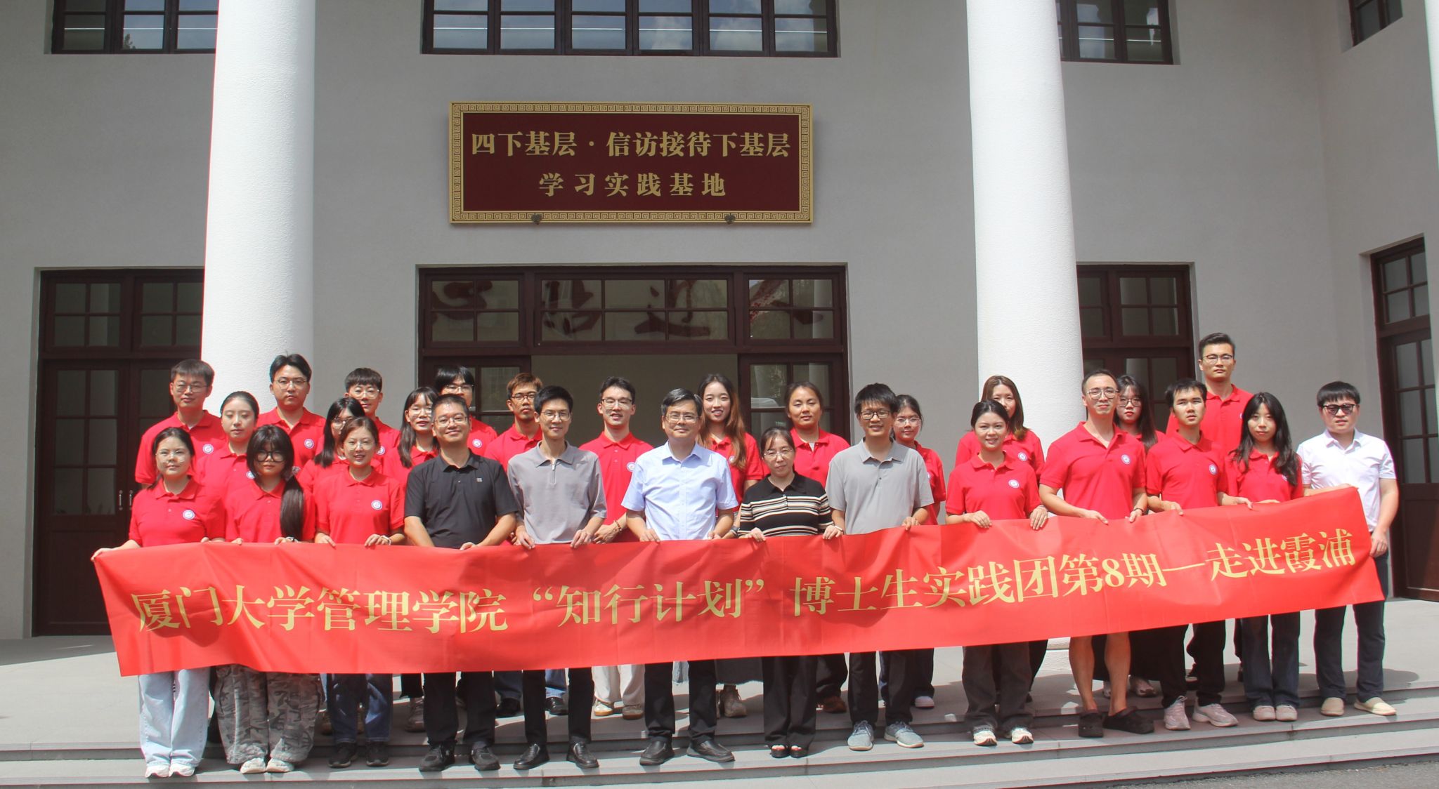 2025年9月26日至27日,管理学院第八期“知行计划”博士生实践团前往宁德市霞浦县,围绕“强信念、察实情、访企业、聚才智”四条主线,通过实地考察、座谈交流、专题研讨等多种形式,深入红色教育基地、乡村基层、重点企业及产业园区,真切感悟乡村振兴生动实践,积极探索县域经济高质量发展路径。院党委副书记周民钦带队,中国能源政策研究院教授张博、副教授杜克锐,团委副书记刘群以及23名博士生共同参加。
