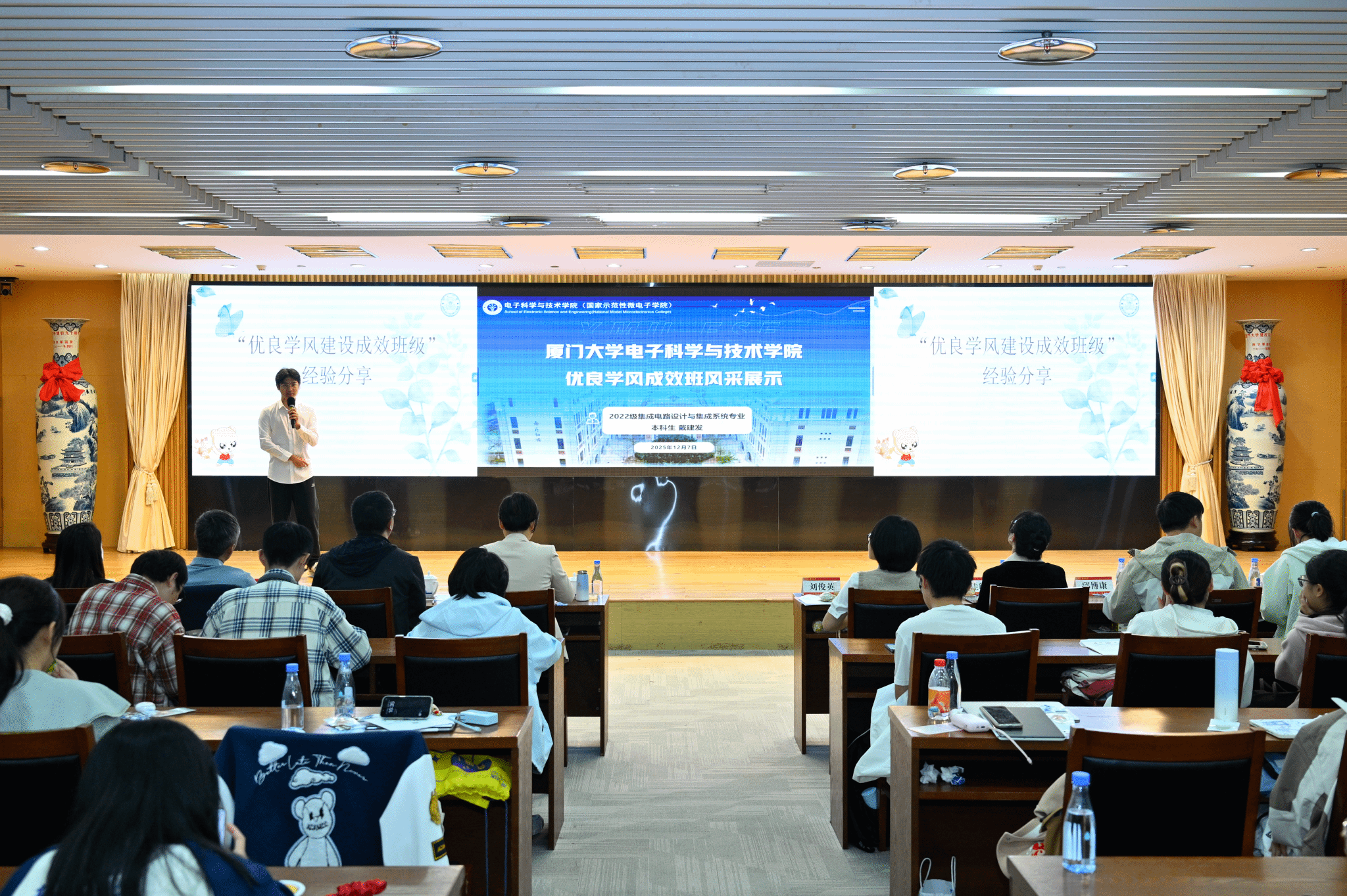 本次活动邀请了“优良学风建设成效班级”--电子科学与技术学院 2022级集成电路设计与集成系统专业作班级建设经验分享。学习委员戴建发同学代表班级展示了班级学风建设的丰富成果。他表示,班级优良学风的培育要坚持五育并举,以党团建设凝心聚魂,以朋辈互助打好学业基础,以科创竞赛激发科学精神,以文体活动保障身心健康,以社会实践涵养家国情怀,通过“目标-路径-平台”三维驱动构建完善的班级育人生态体系,促进班级同学德智体美劳全面发展。