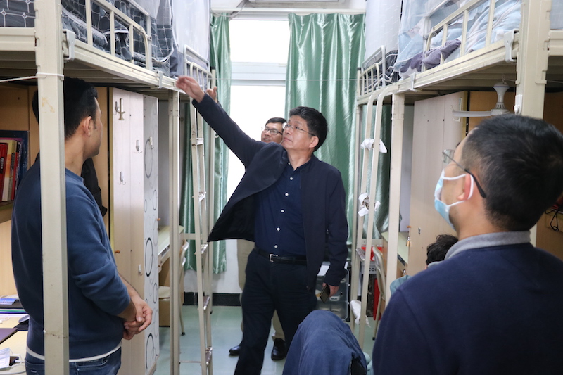 徐进功副书记还来到留校学生宿舍,了解他们的假期安排和学习生活情况,为他们送去新春的祝福。
