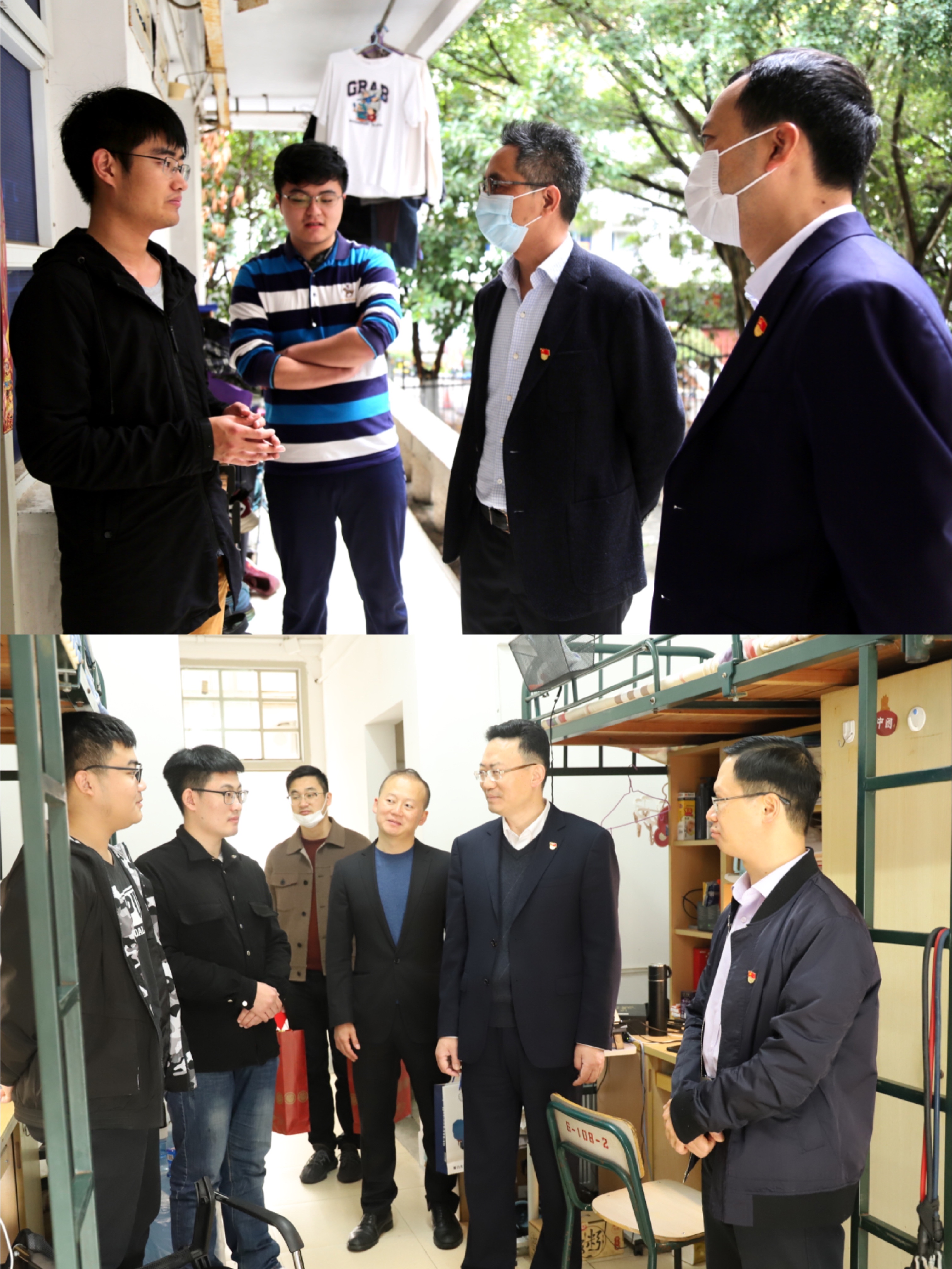 新春到来之际,2月11日上午,校党委副书记徐进功,副校长周大旺,校党委常委孙理分别率队走访了思明校区学生宿舍楼,看望慰问寒假留校学生,为他们送上诚挚问候和新春祝福。