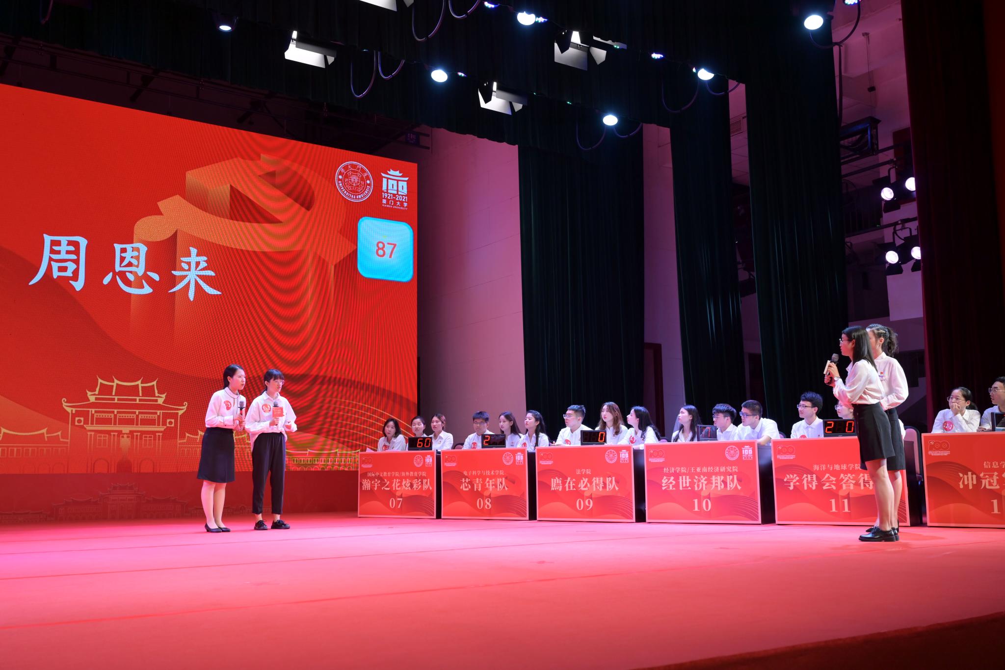竞赛结合党史学习教育,以弘扬嘉庚精神、奋进百年新征程为主要内容,通过学习、宣传和竞赛,深化学生对党史、校史的认识和理解,引导广大学子学史明理、学史增信、学史崇德、学史力行,做到学党史、悟思想、办实事、开新局,以实际行动和优异成绩献礼建党百年和建校百年。比赛于今年四月火热开赛,经过线上答题初试、校级笔试选拔,团队积分排名前十二名的队伍进入总决赛。为进一步创新比赛形式,今年的决赛现场还邀请了四位厦门大学“扬才计划”学生党支部书记培训班的学员在现场进行党史校史主题的微党课演讲,并将竞赛题目融入微党课内容之中,选手们需要在听完演讲后作答。三组微党课分别以《纪念罗扬才烈士》《闽宁协作,海誓山盟·精准脱贫》《扬帆“嘉庚”号,驶向海洋强国梦》为主题,将党史和校史穿插其中,既增加了比赛的趣味性,又在潜移默化中提升了育人成效。