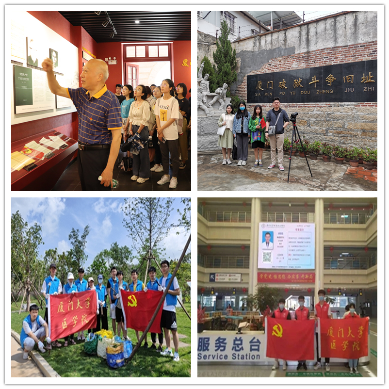 走:从实践中拓展视野的广度。走进红色革命圣地。组织学生前往中共厦门大学支部诞生地、厦门破狱斗争旧址、英雄三岛战地观光园、古田会议会址、瑞金革命遗址等地开展主题实践活动,以参观文物旧址、听取英雄故事、瞻仰烈士纪念碑、参访调研等形式进行现场教学,推动课堂授课与实践教学相结合。走近英雄精神世界。编排舞台剧《南强红笺》,以厦门大学13位革命先辈的感人故事为原型,用诗文诵读、情景表演的形式,再现英雄精神风貌,拍摄革命烈士高捷成英勇事迹微电影、“我身边的红色故事”系列短视频,还原革命历史,传承英雄矢志。走向知行合一舞台。立足百年校庆重要庆典,将校庆志愿服务活动转化为党史校史教育的生动课堂,鼓励学生积极参与2021厦门马拉松赛、建设八闽园、警务翻译实践项目、助力疫苗接种等多项志愿服务活动,激励广大学生在志愿行动中感受厦门改革开放辉煌历史,弘扬厦大人的爱国情怀和责任担当。