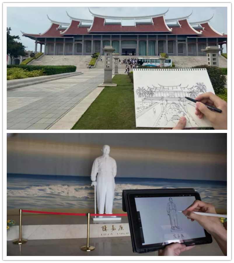 最后,同学们依次参观了“陈嘉庚生平”、“倾资兴学、情系乡国”、“纾难救国、民族之光”和“在陈嘉庚身边—嘉庚现象诚毅同行”等四个展厅,对于嘉庚先生的创业之路以及实业办学、倾资兴学等事迹进行了全面了解,进一步坚定理想信念。参观过程中,同学们拿出了画笔,用手绘记录下了难忘的情景。