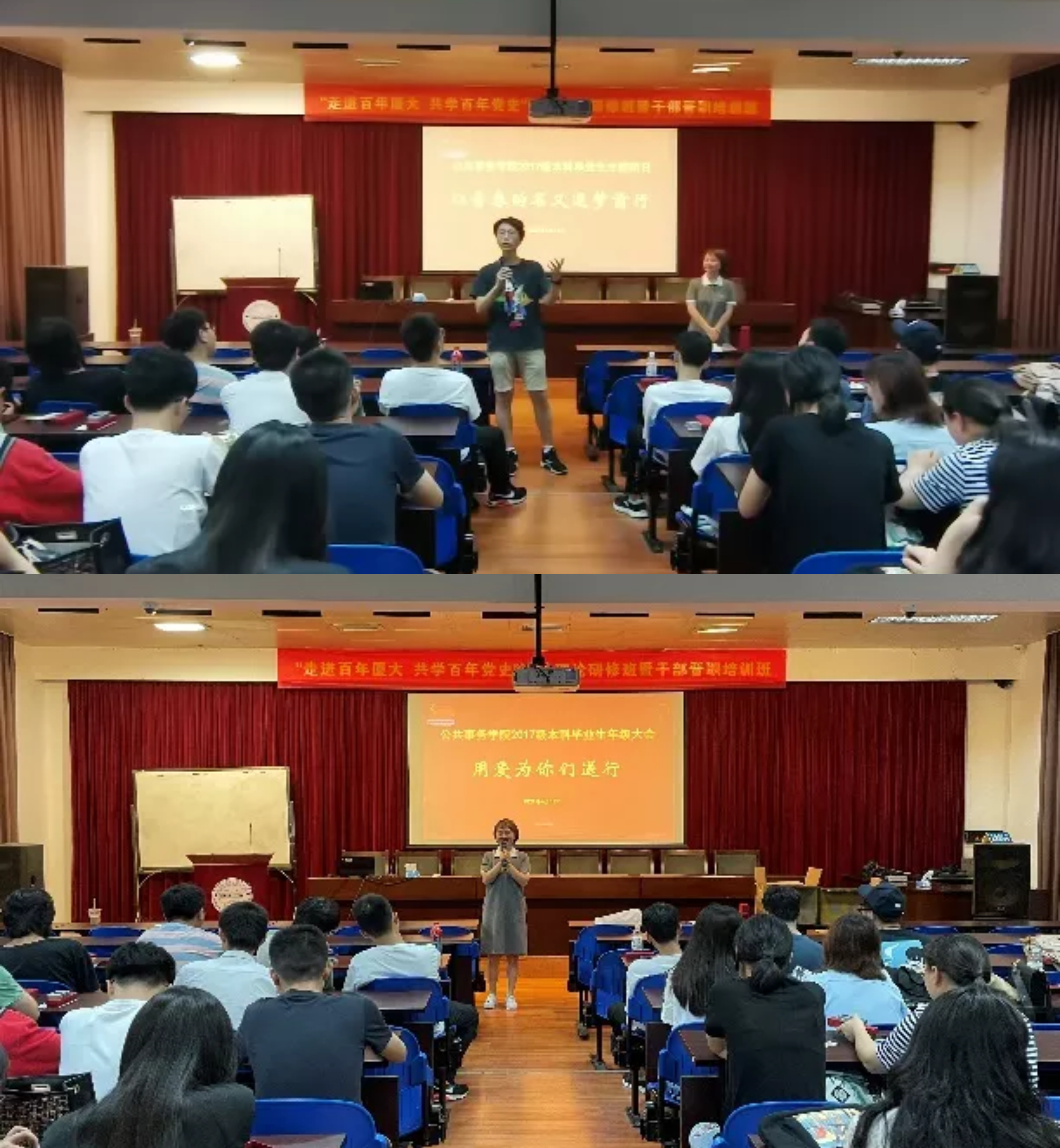 为学习贯彻习近平总书记致厦门大学建校100周年贺信中“为党育人、为国育才”的要求,培养毕业生爱党爱国情怀,激发毕业生爱校荣校热情,公共事务学院近期举办了毕业季系列主题活动,在欢送2021届毕业生的同时,为他们上好离校前的最后一堂“思政课”,激励他们立大志、明大德、成大才、担大任,在新时代、新天地建功立业,让理想信念在干事创业中升华,让青春年华在创新创造中闪光。