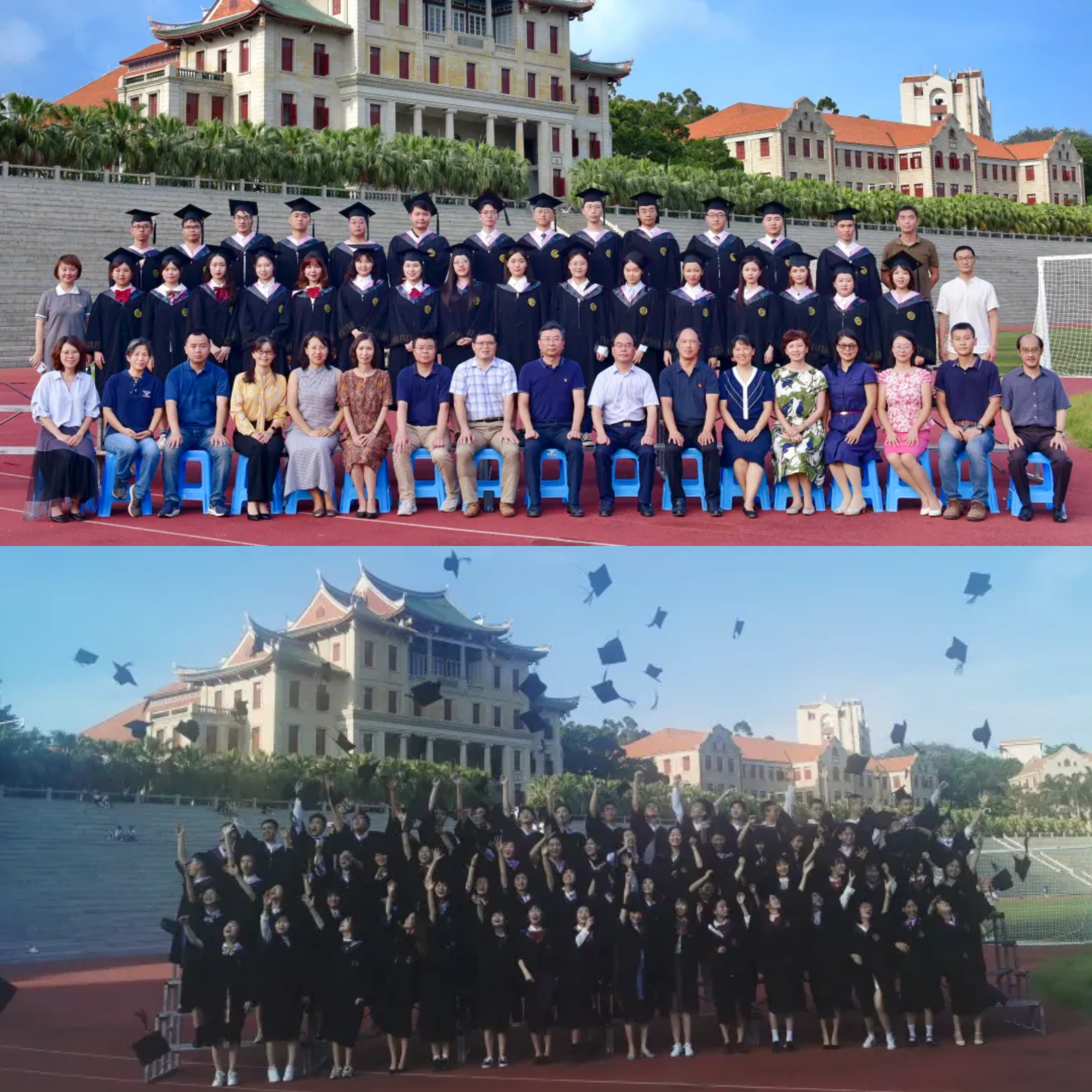 凤凰花一年花开两季,一季迎来新学子,一季送走毕业生。为了留下美好的青春记忆,学院组织全体毕业生身穿学位服,在上弦场合影留念,记录毕业的美好瞬间。学院教师们也到场与同学们合影留念。