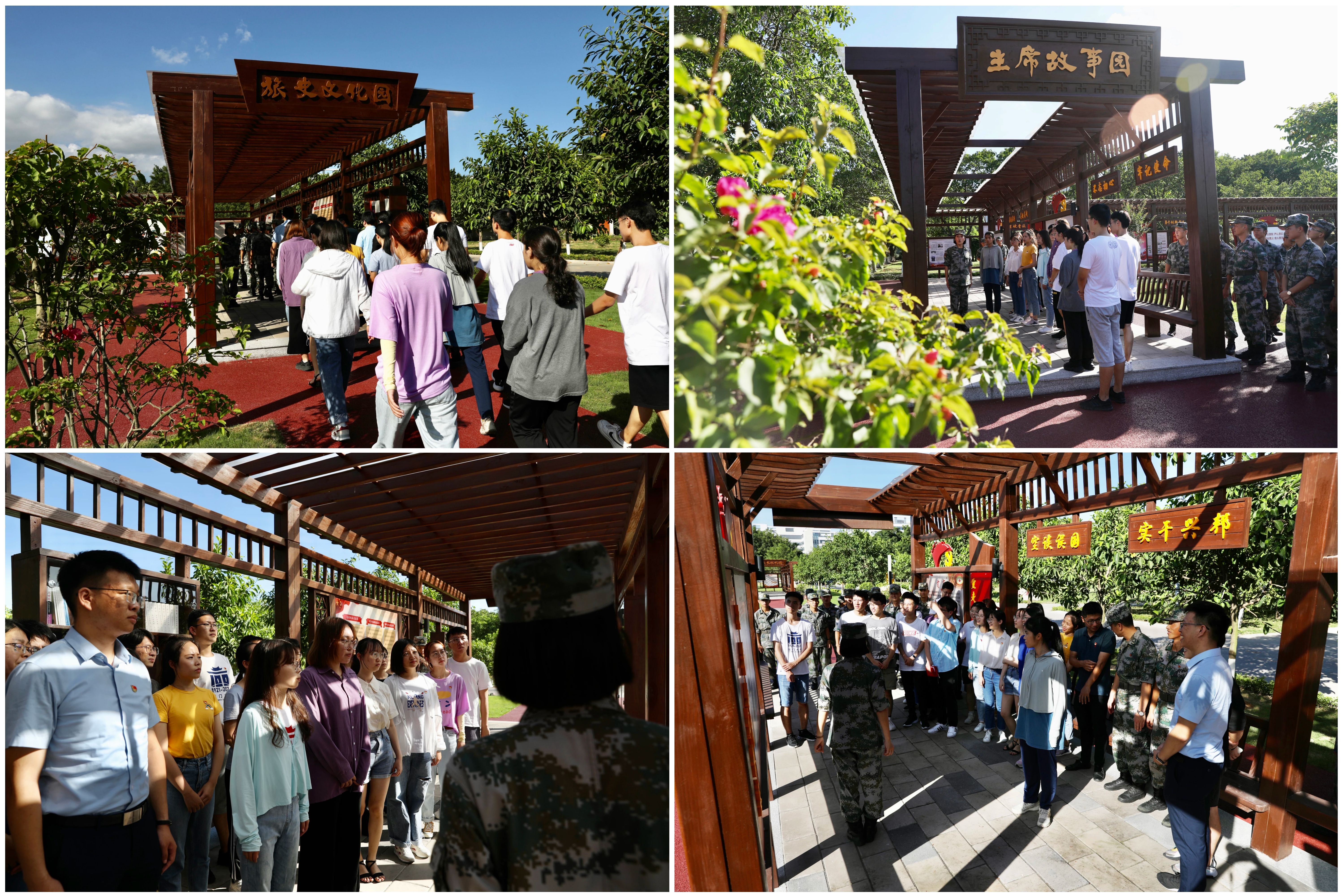 穿过威武庄严的强军广场,学院师生和部队官兵来到主席故事园。这里展示的是习近平主席从梁家河插队知青到党中央总书记这一路为人民谋幸福、为民族谋复兴的奋斗历程。“在陕北,他‘看到了人民群众的根本,真正理解了老百姓’;在正定,他实现了改善农民生活的承诺;在厦门,他说要‘一张蓝图画到底,一茬接着一茬干’;在宁德,他提出脱贫攻坚既要‘弱鸟先飞’又要‘滴水穿石’。”师生彷佛乘上了时间列车,跟随青年习近平同志一路行来的足迹追寻初心使命,正是这些激情燃烧的岁月,蕴含着青年习近平同志成长的深厚历史逻辑、实践基础和人民情怀,他的为民品格、务实底色、问题导向和创新思维,是当代中国青年学习工作、谋事创业的模范和榜样。