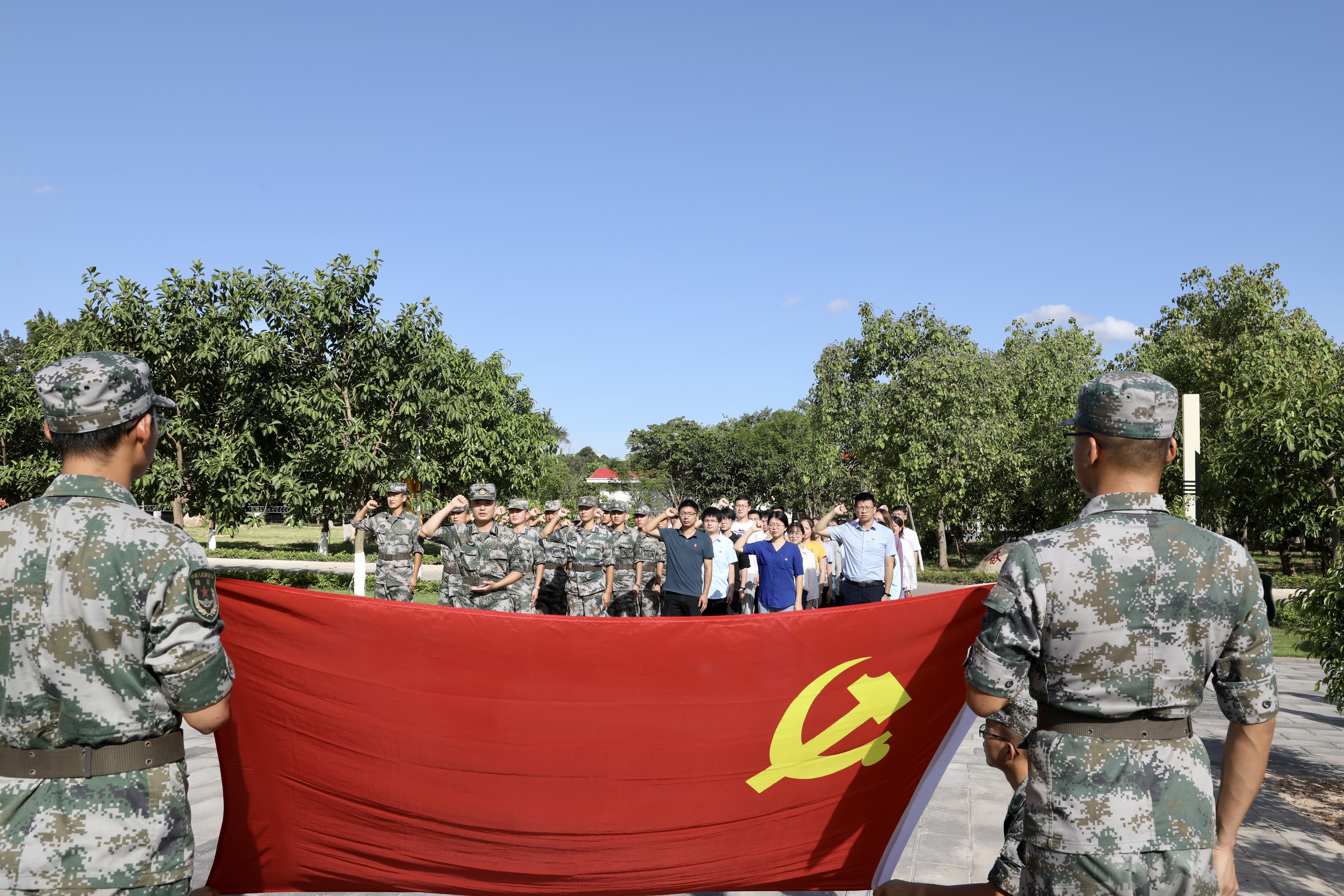 心中有信仰,脚下有力量,带着对青年习近平同志在红色基因传承中历练,在艰难困苦境遇中磨砺,在丰富基层实践中成长的感悟,师生党员和部队官兵党员面向鲜红的党旗,重温入党誓词,“我志愿加入中国共产党……随时准备为党和人民牺牲一切,永不叛党”的庄严承诺在强军广场上回响。