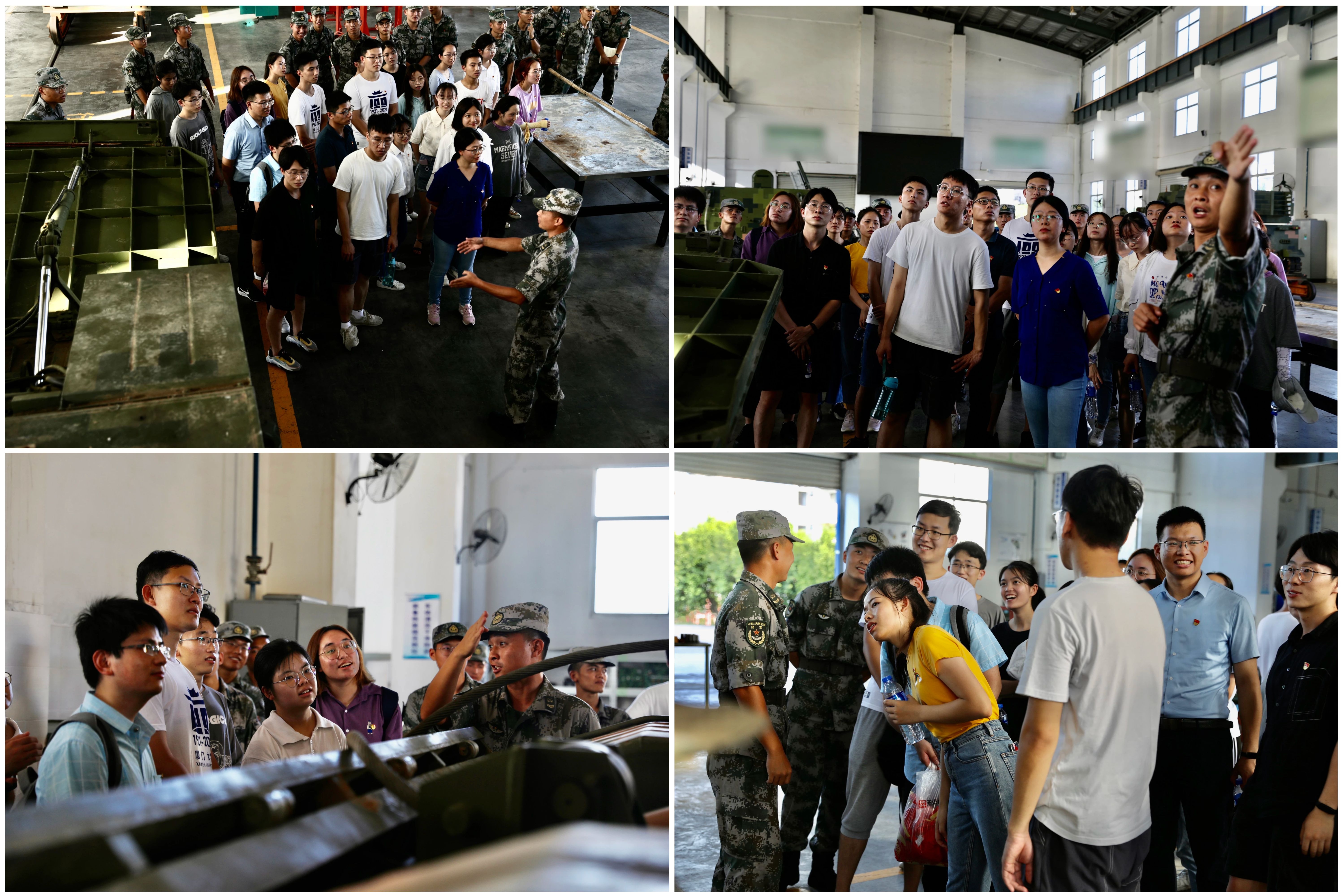 宣誓仪式后,大家来到该部修理一连,参观正在这里进行检修的两栖登陆作战装甲车、步兵输送车、后勤保障车等实战装备。连队班长热情向大家介绍各类装备型号、作战用途和性能。我国成功自主改造某型坦克发动机,实现体积缩小和功率增大,某型推进器关键技术取得突破,不仅可以实现装甲车辆海上航速高于陆上航速,而且能够轻松应对复杂水体环境。“强国必须强军,军强才能国安”,对大型作战装备的参观,师生党员坚定了人民军队保卫人民与维护国家安全强大的信心,更加深刻的理解巩固国防和强大军队是新时代坚持和发展中国特色社会主义、实现中华民族伟大复兴的战略支撑。