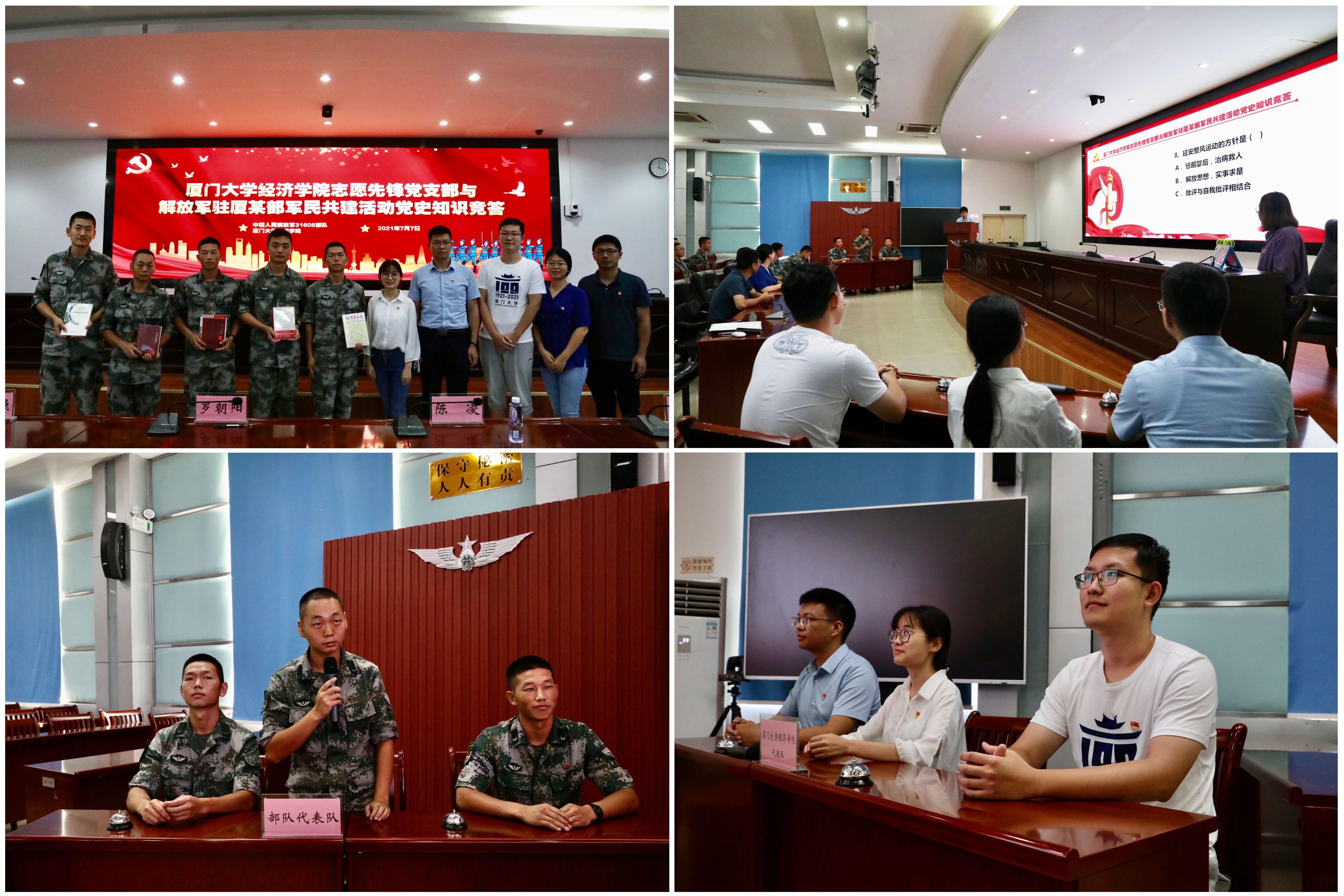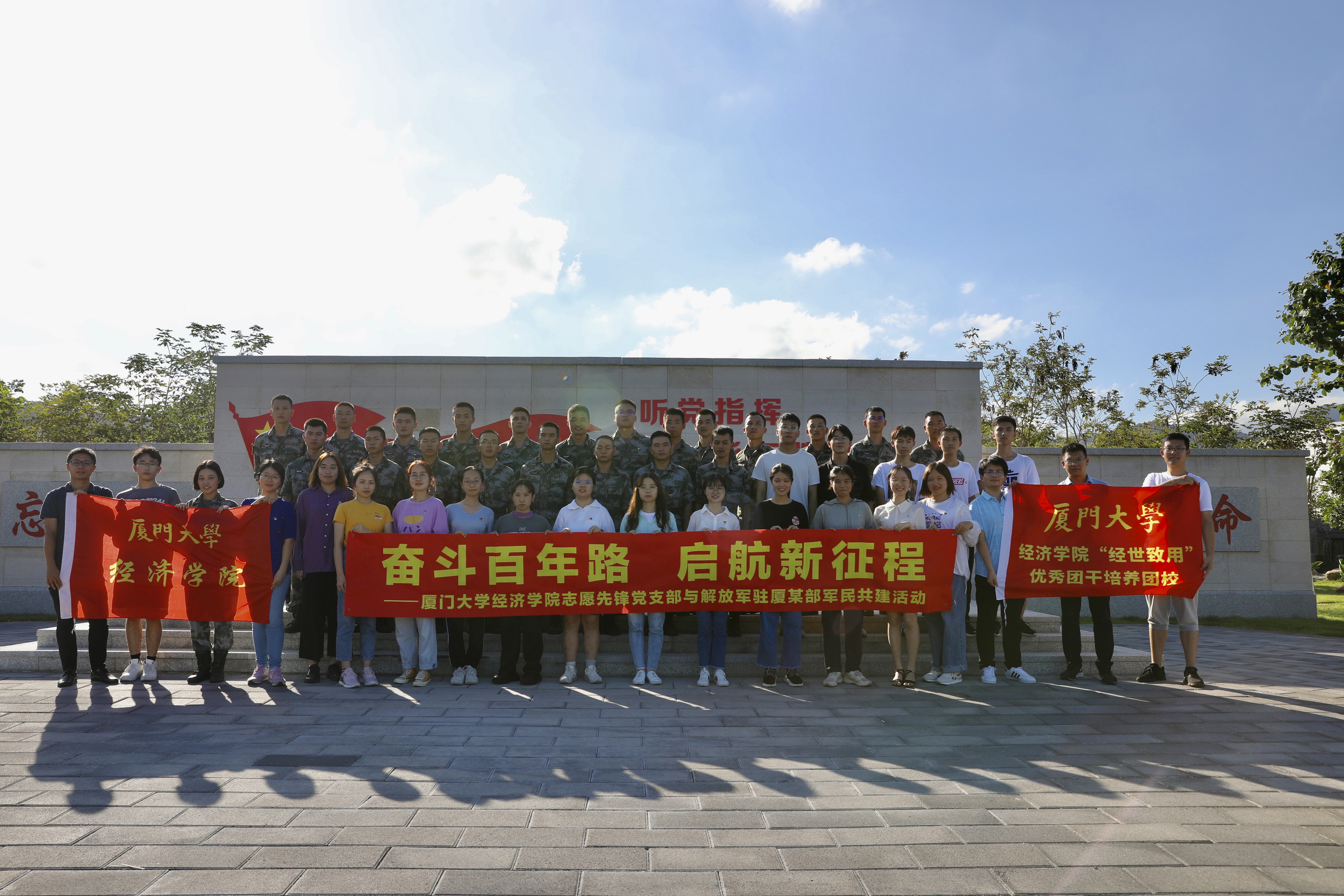 为深入学习贯彻习近平总书记在庆祝中国共产党成立100周年大会上的重要讲话精神,深刻领会伟大建党精神的科学内涵和时代价值,严格落实党史学习教育的部署要求,厦门大学经济学院志愿先锋党支部组织学院部分师生党员于7月7日前往解放军驻厦某部开展以“奋斗百年路 启航新征程”为主题的支部共建活动。