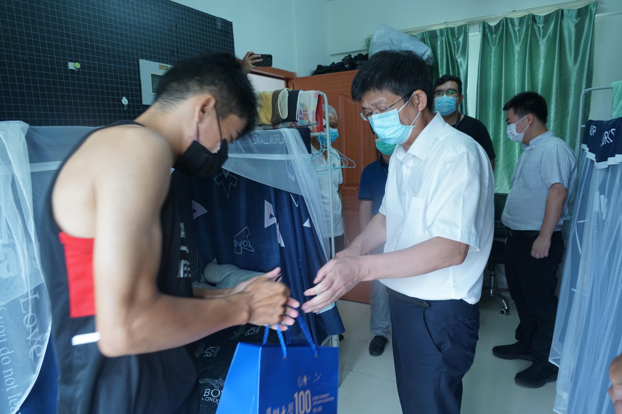 8月1日上午,校党委副书记徐进功一行来到翔安校区学生园区深入检查暑期疫情防控工作并看望慰问因疫情无法返乡的学生代表。