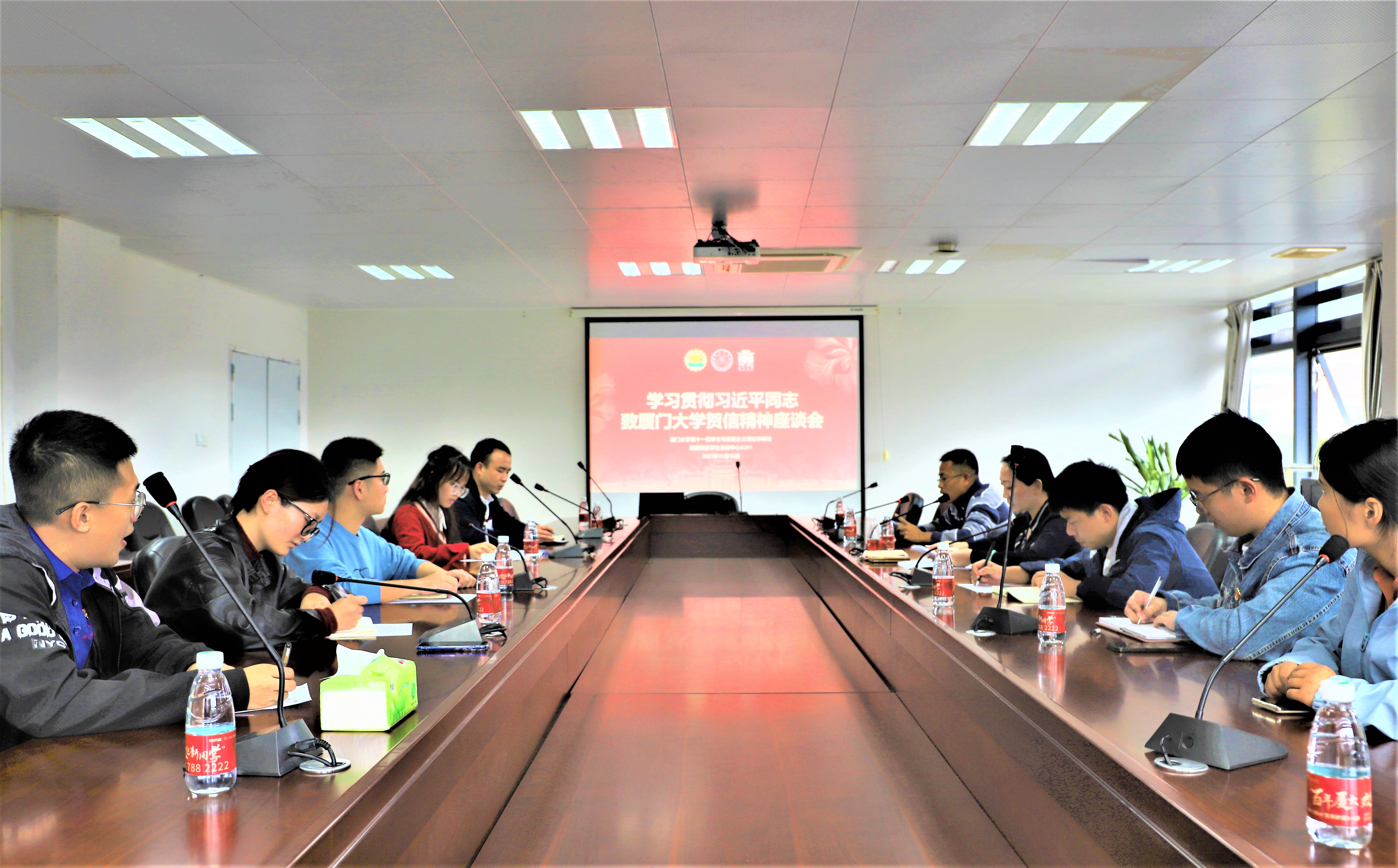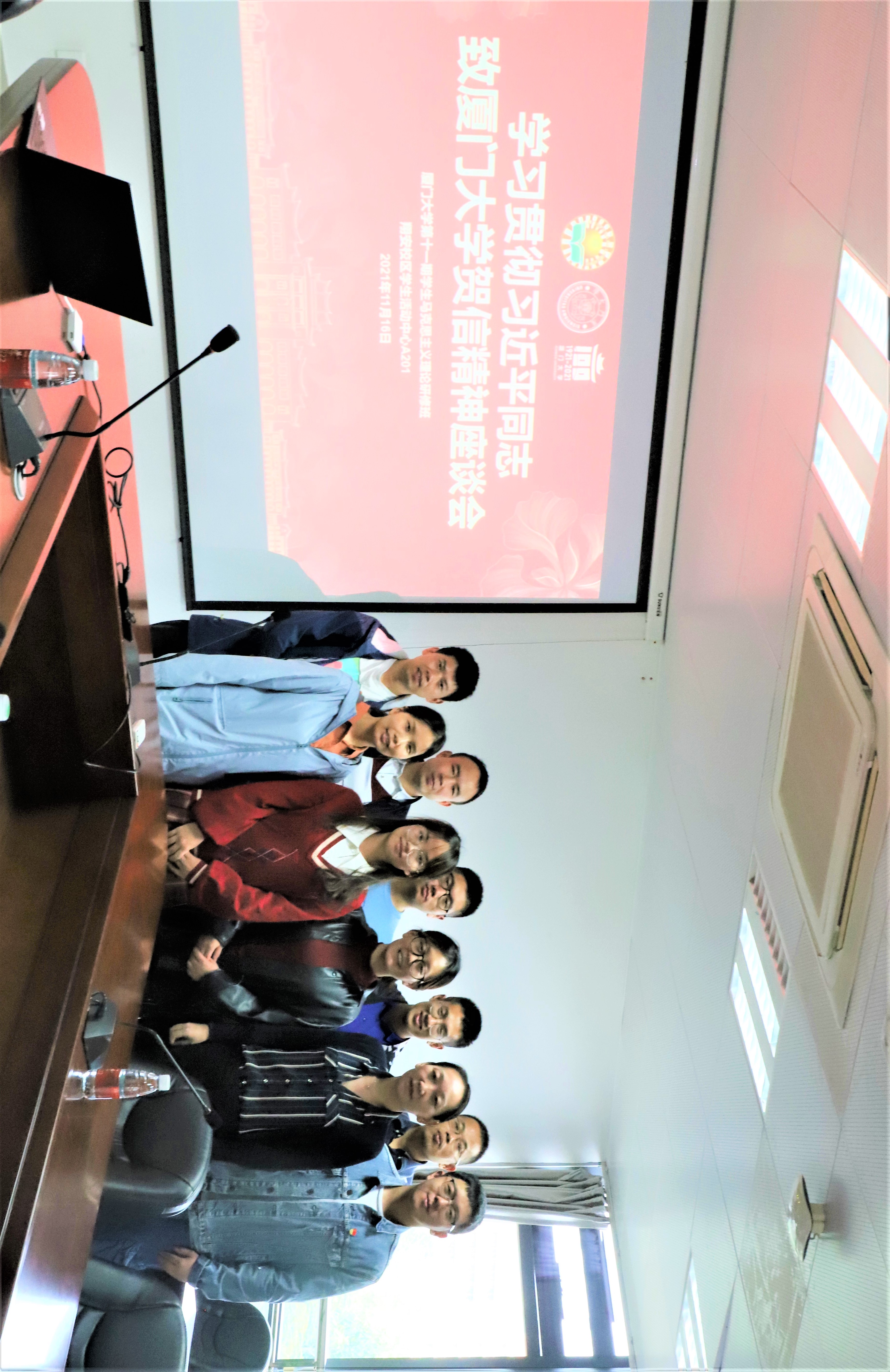 2021年11月16日下午,厦门大学第十一期学生马克思主义理论研修班在翔安校区学生活动中心A201会议室举行座谈会,开展新一轮习近平同志致厦门大学贺信精神的专题学习。学生工作部副部长许美霞和第十一期马研班指导老师方晨亮、石义凯、李韧卓出席会议,会议由谢婷婷主持。