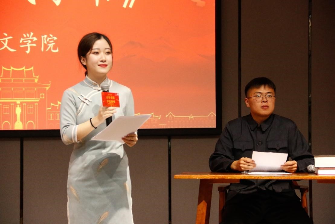 决赛开始前,来自外文学院的同学们为现场嘉宾和观众带来了朗诵及演唱表演《青春》,他们用声情并茂的诵读描绘出了新一代青年的昂扬向上的青春风采,用悦耳动听的歌声鼓励青年学子认真学习党史,勇担时代使命。