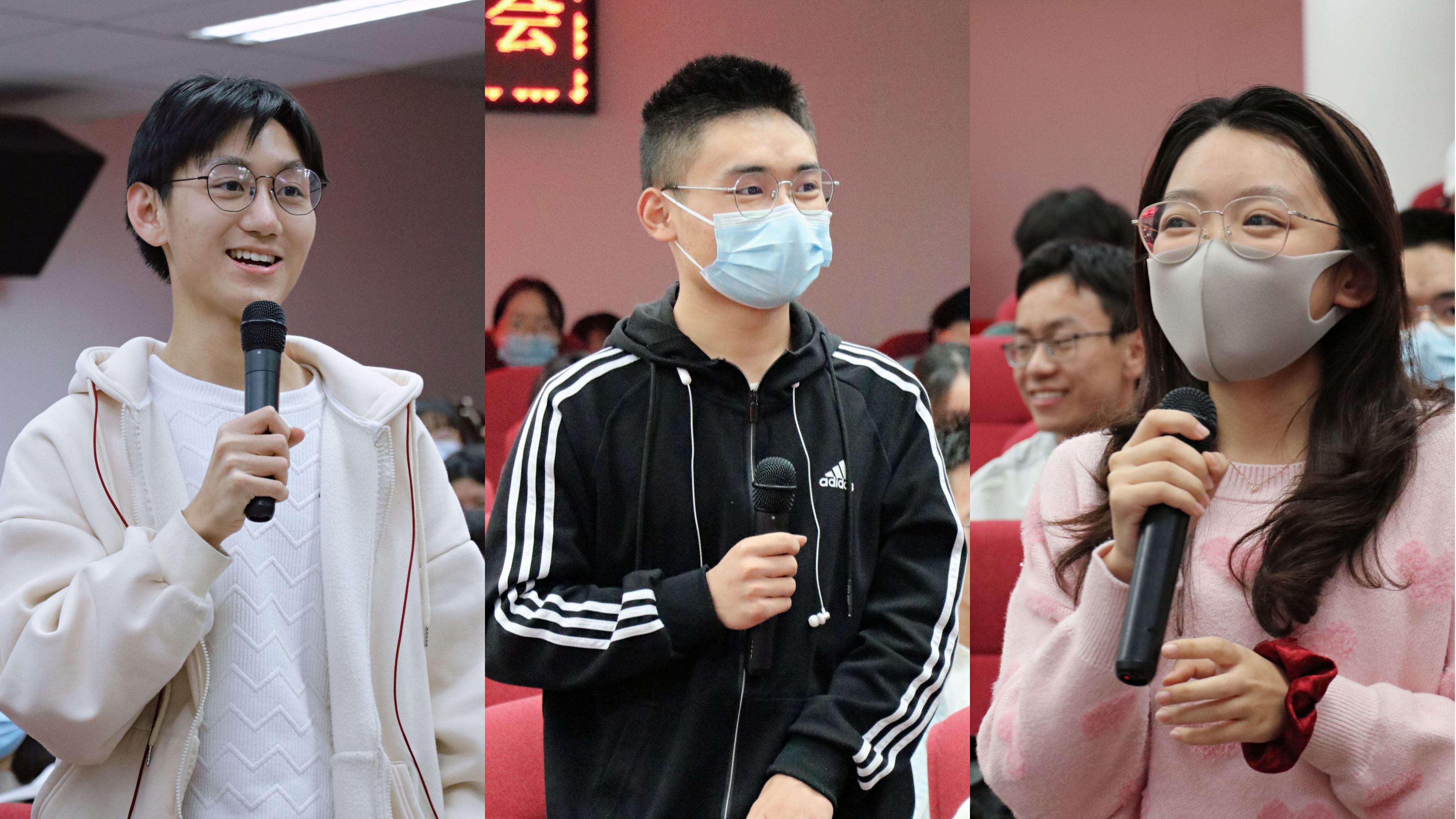 交流问答环节,参会同学针对自己在学习、科研和生活各方面所关心的问题积极提问,四位国奖获得者也积极回应,毫不吝啬地分享自己的经验和感悟。通过经验分享,参加交流会的同学对如何充实地渡过大学生涯、如何规划未来科研方向等方面有了更清晰的认识。伴随着全场同学的掌声,本次国奖分享会圆满落幕。