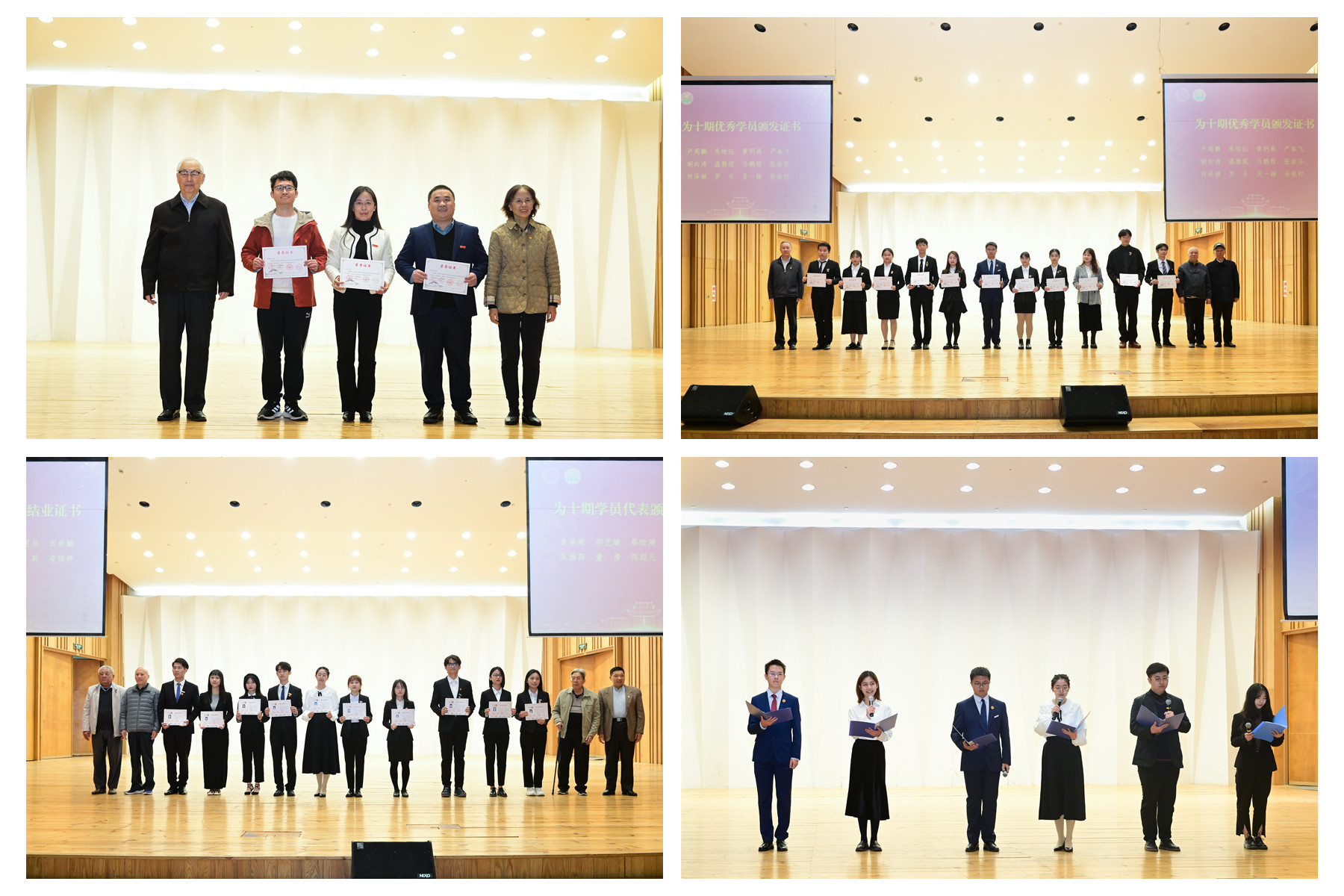 党委学生工作部部长、第十期马研班班主任李峰作结业汇报,对两年来班级在理论研修、党建工作、志愿服务、课题调研、社会实践、课外活动等方面的工作情况进行总结。一是强化理论学习,筑牢思想根基,培养信仰坚定的马克思主义者。扎实开展集中理论学习、举办专题研讨,组织学员阅读经典著作10余本,开办线上读书会5次,线下读书沙龙20次,形成读书笔记400余篇。二是开展实践活动,提升综合素质,锻造担当大任的时代新人。第十期学员们深入实践锻炼,前往厦门市内红色基地和社区、古田会议旧址和武平县等地开展了社会实践;学员调研报告获得吴宣恭科研奖学金二等奖和大学生返乡调查竞赛特等奖。三是树立先进典型,凝聚榜样力量,引领向上向善的奋斗青年。在福建省高校大学生学习马克思主义理论“一‘马’当先”知识竞赛、“马克思主义能够给予我们什么”主题征文和微演讲等活动中皆获佳绩;精心组建党史宣讲队伍,以实际行动、创新形式,传播马克思主义。学员也积极投身志愿服务,在开学迎新、毕业典礼、百年校庆等大型活动中彰显马研学子的青春风采。