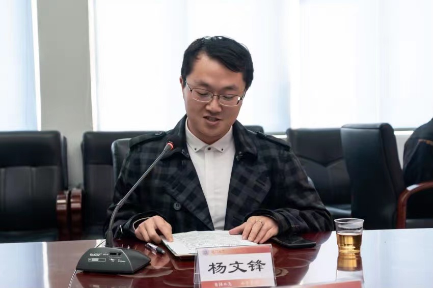 2019级新闻与传播学硕士生杨文锋代表获奖同学发言。他首先表达了对木之森集团的感激之情,并汇报了在担任“马新班”团支书期间开展的丰富活动、创新的传播方式和取得的丰硕成果。他表示,获得本次奖学金将会督促他不断前进,争取更大的成绩。