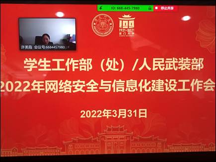 3月31日,学生工作部(处)/人民武装部2022年网络安全与信息化建设工作会在思明校区颂恩楼1609会议室举行。部长李峰,副部长许美霞、吴德文,部(处)科室负责信息化项目建设、融媒体宣传和信息的工作人员参加会议,会议以线上和线下相结合的方式举行。副部长许美霞主持会议。