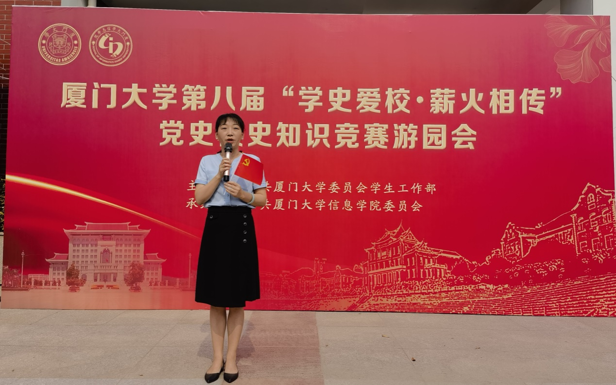 4月22日下午,由学生工作部主办、信息学院党委承办的厦门大学第八届“学史爱校·薪火相传”党史校史知识竞赛游园会在翔安校区一期食堂广场举行。活动开幕式由信息学院党委副书记龙坚毅主持,学生工作部副部长许美霞、教育科科长王志煌、信息学院全体辅导员及翔安校区各学院学生代表参加活动。