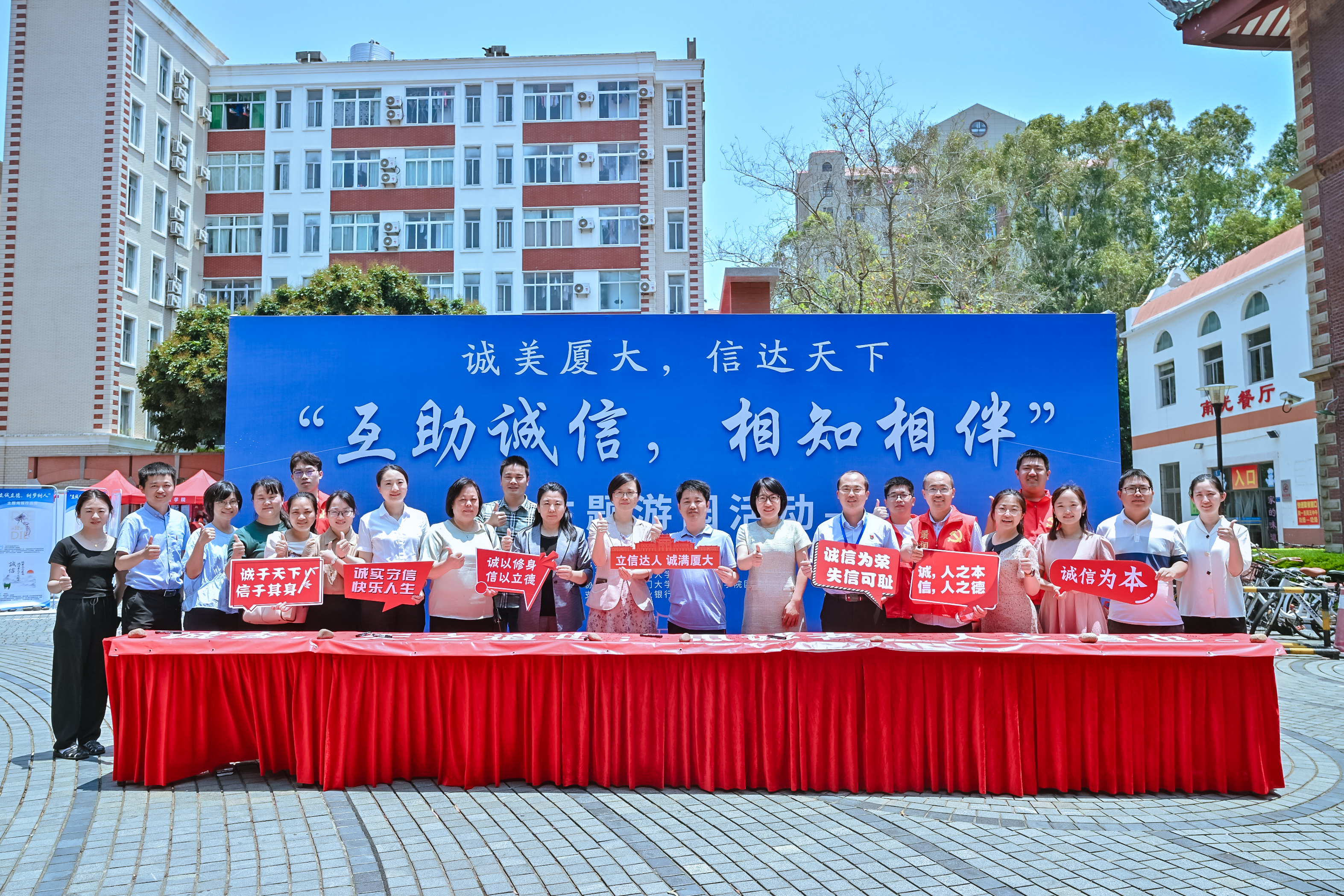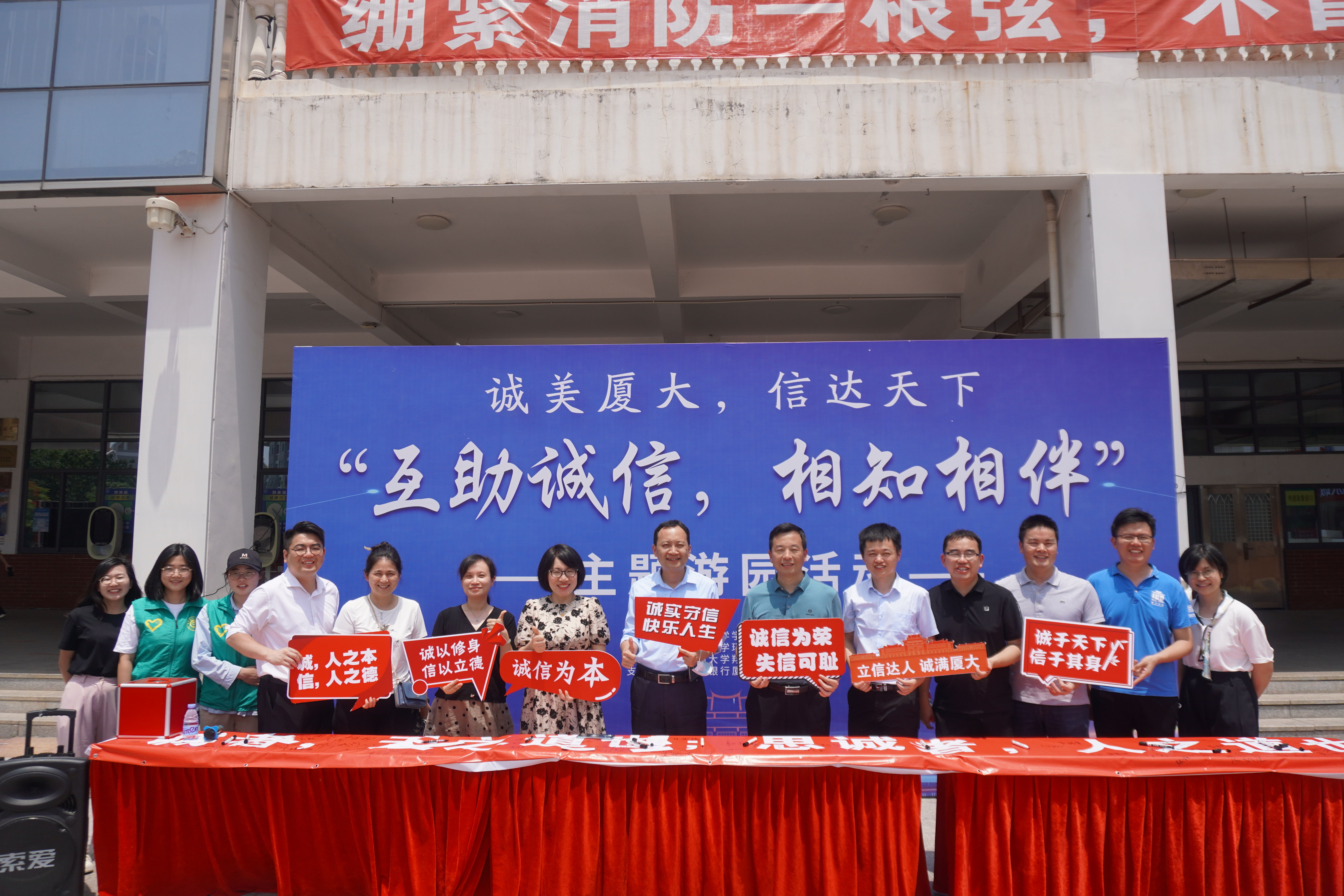 为落实立德树人根本任务,构建诚实守信的校园文化,加强学生的诚信教育,引导学生讲诚信、守诚信、践诚信,5月25-26日,学校在思明校区和翔安校区举办“互助诚信,相知相伴”主题游园活动。本次活动由学生工作部主办,数学科学学院、环境与生态学院承办。学生工作部副部长洪春生、刘俊英,医学院党委书记李峰、数学科学学院党委书记张清榕、副书记丁昌利、环境与生态学院党委副书记蔡虎堂、新闻传播学院党委副书记李芬芬等出席活动,全校1000余名学生参加。活动得到了兴业银行厦门分行赞助支持。