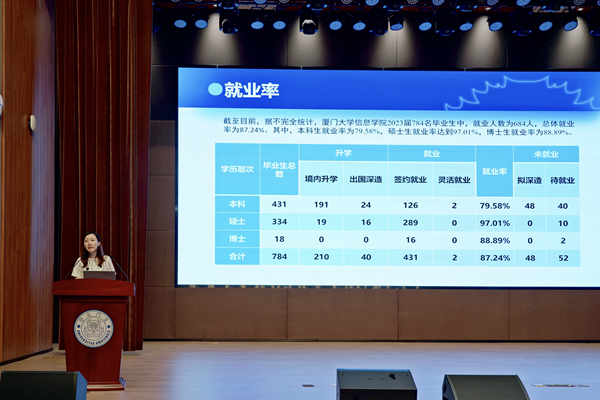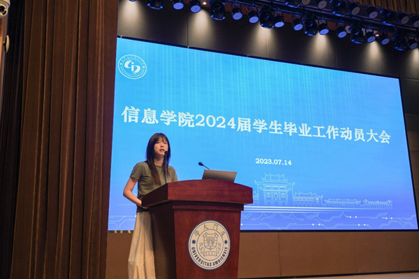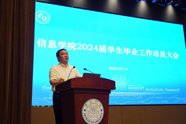 为深入开展学习贯彻习近平新时代中国特色社会主义思想主题教育,扎实推进学风建设,加强毕业生教育管理,引导、帮助毕业生认清就业形势,尽早做好职业规划,7月14日,信息学院在西部片区三号楼报告厅举办2024届学生毕业工作动员大会。院党委书记刘弢作动员讲话。会议特别邀请建发股份、新航道等企事业单位人员到会开展就业指导和考研、留学培训。