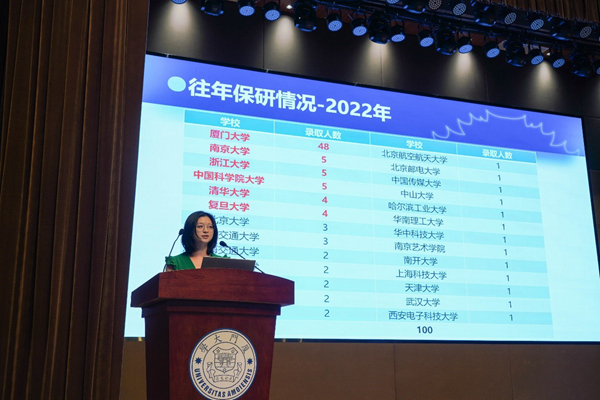 建发股份数字化中心人力资源主管蔡伟婷从基本素质和专业能力两个层面讲解面试技巧,并进一步提炼为求职者应具备的“四力”即问题与解决能力、沟通表达能力、创新能力、技术能力。她强调同学们不仅要有解决问题的专业本领,更要有追根溯源、分析问题的技术成就导向能力。新航道好轻松考研主管邱荣华简要介绍了考研政治、考研英语的答题技巧,并抓住不同阶段备考的心理状态特征,提出了调整心态的有效方法。新航道北美留学部总监宋子辰援引各类留学申请案例,着重分析信息学科不同专业的申请难度,并提出相应建议。