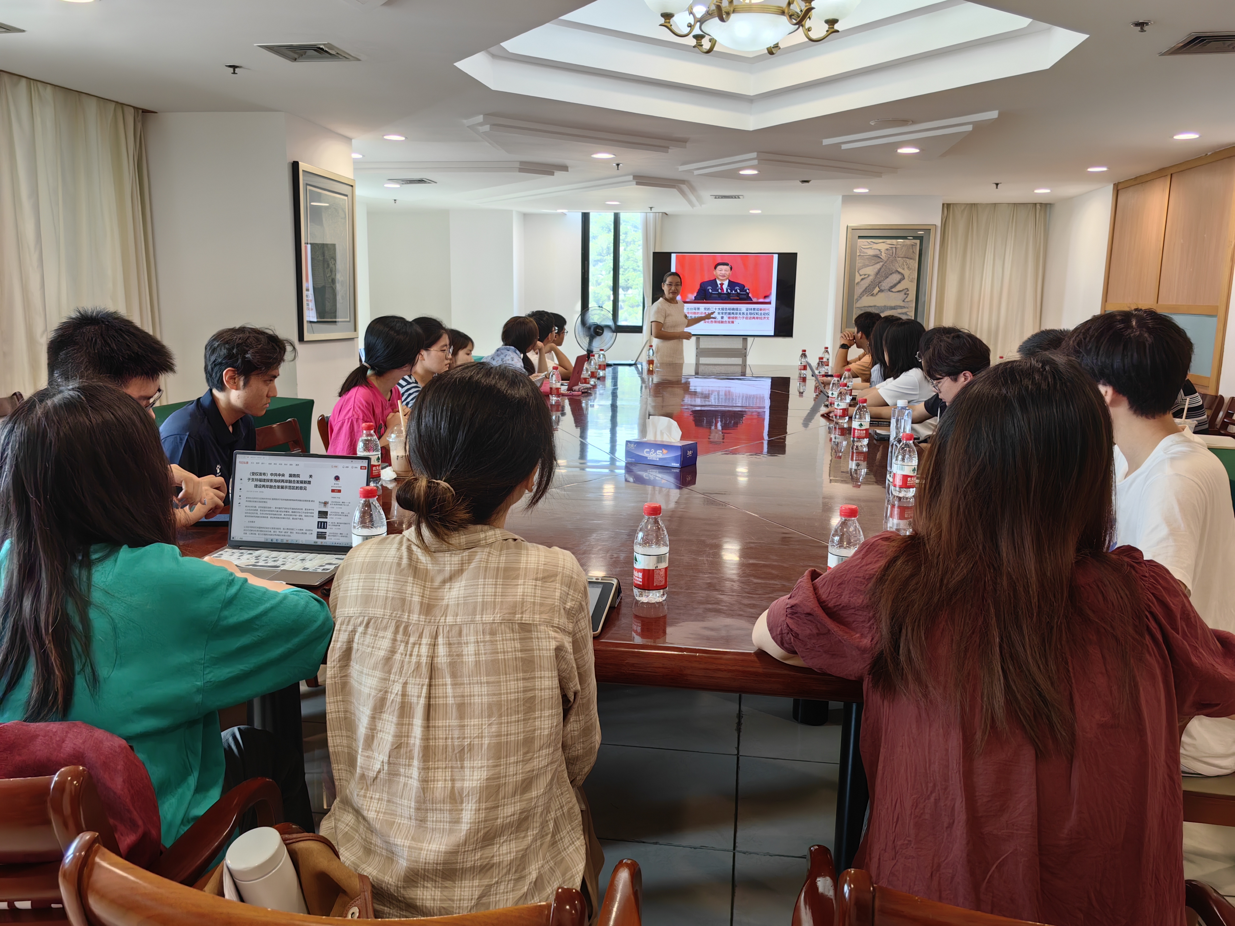 9月24日下午,第二期“行远”计划学员在颂恩楼1609会议室开展第一次集中理论学习,理论指导老师台湾研究院张宝蓉教授就《中共中央 国务院关于支持福建探索海峡两岸融合发展新路建设两岸融合发展示范区的意见》(以下简称《意见》)为学员们进行解读。