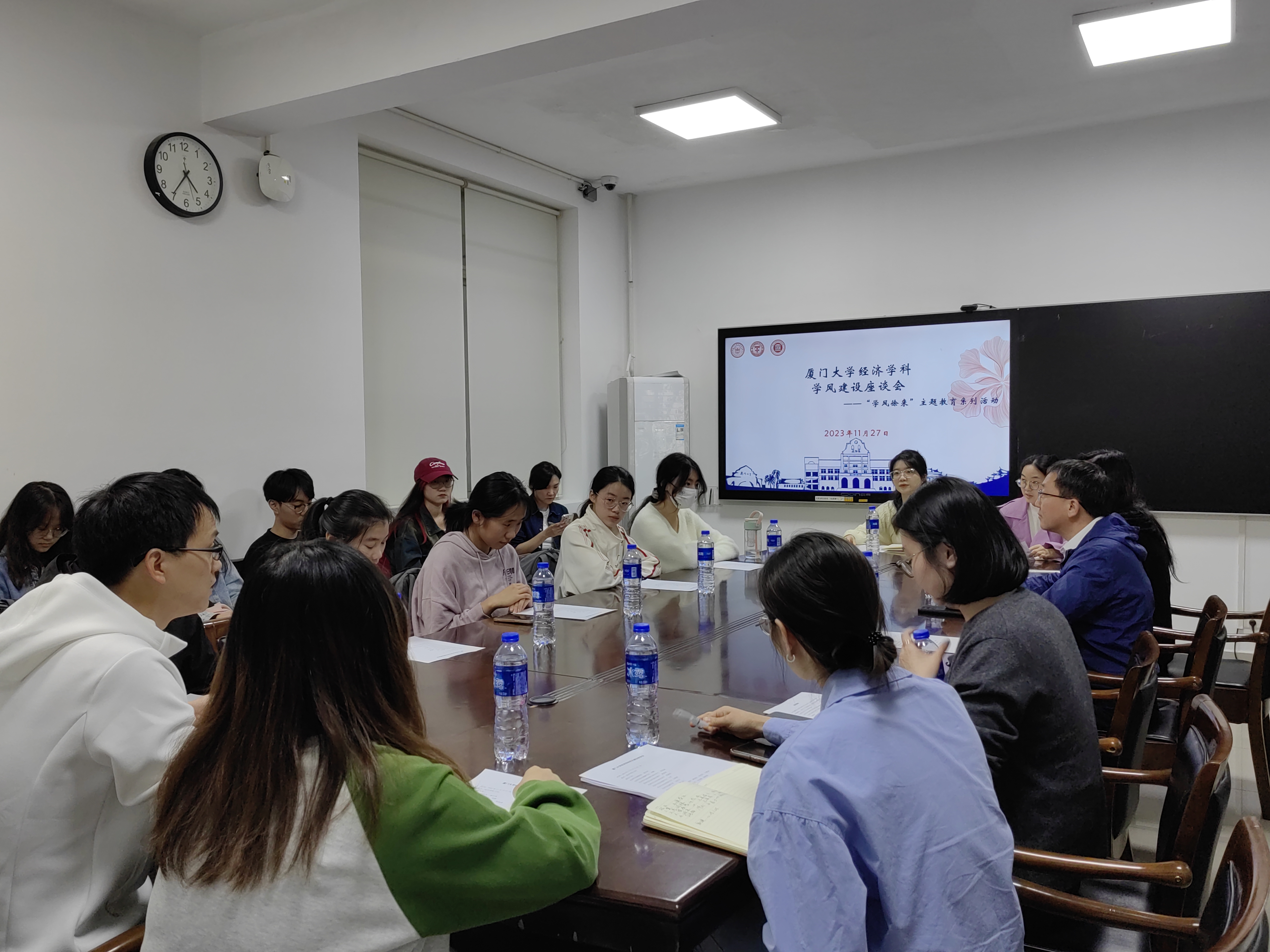 “中国式现代化是中国共产党领导的社会主义现代化……”11月27日,在学生公寓芙蓉二学习共享空间,一场别开生面的“师说·生语”经典原著读书会如期举行,这也是厦门大学经济学科“学风徐来”系列主题活动之一。
