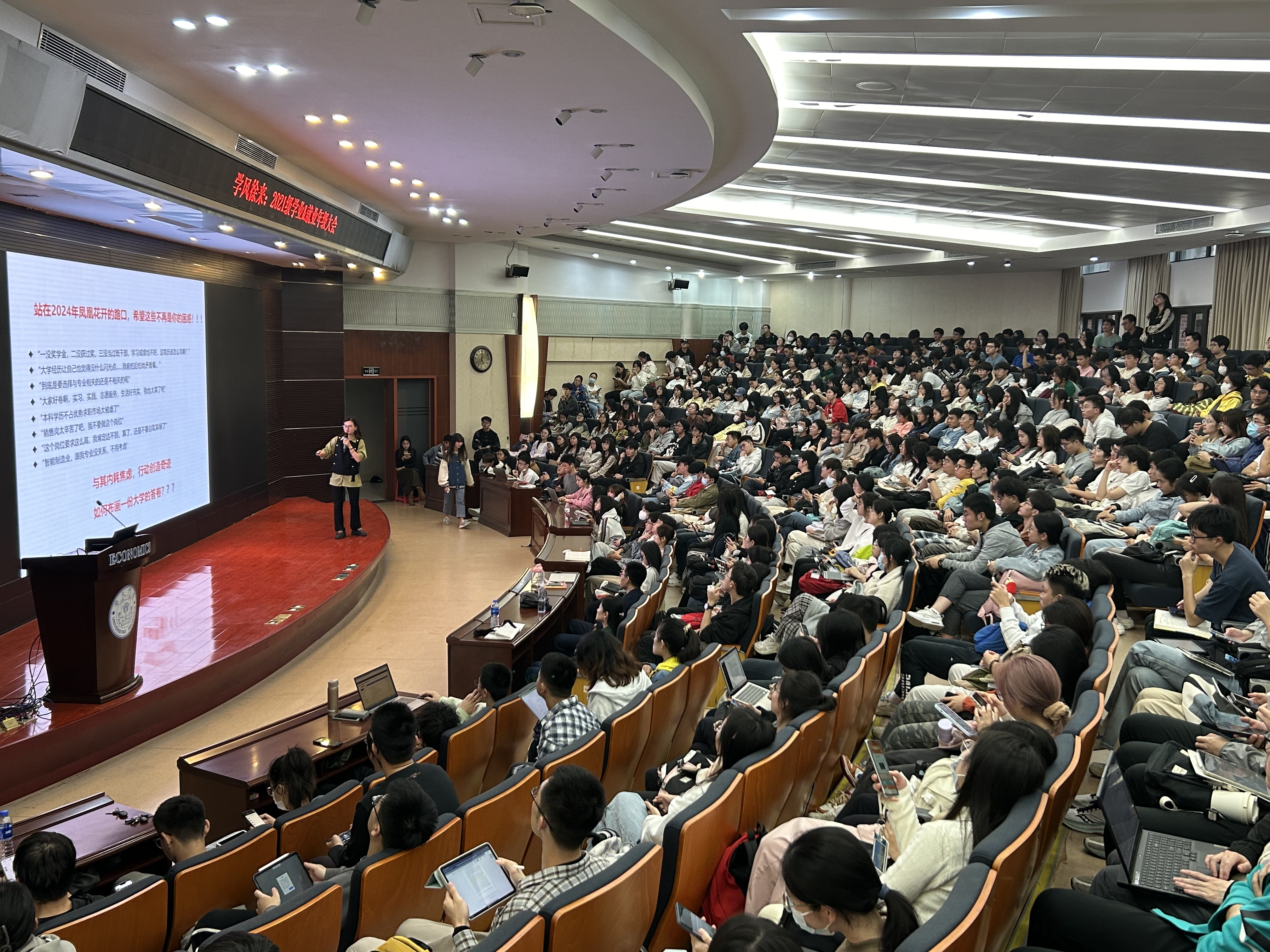 近期,此类活动在经济学科接连不断。据不完全统计,本学期以来,学科围绕考研保研、出国留学、生涯规划、求职技巧、企业参访、学术竞赛等内容开展了40余场活动,近4000人次学生参加。
