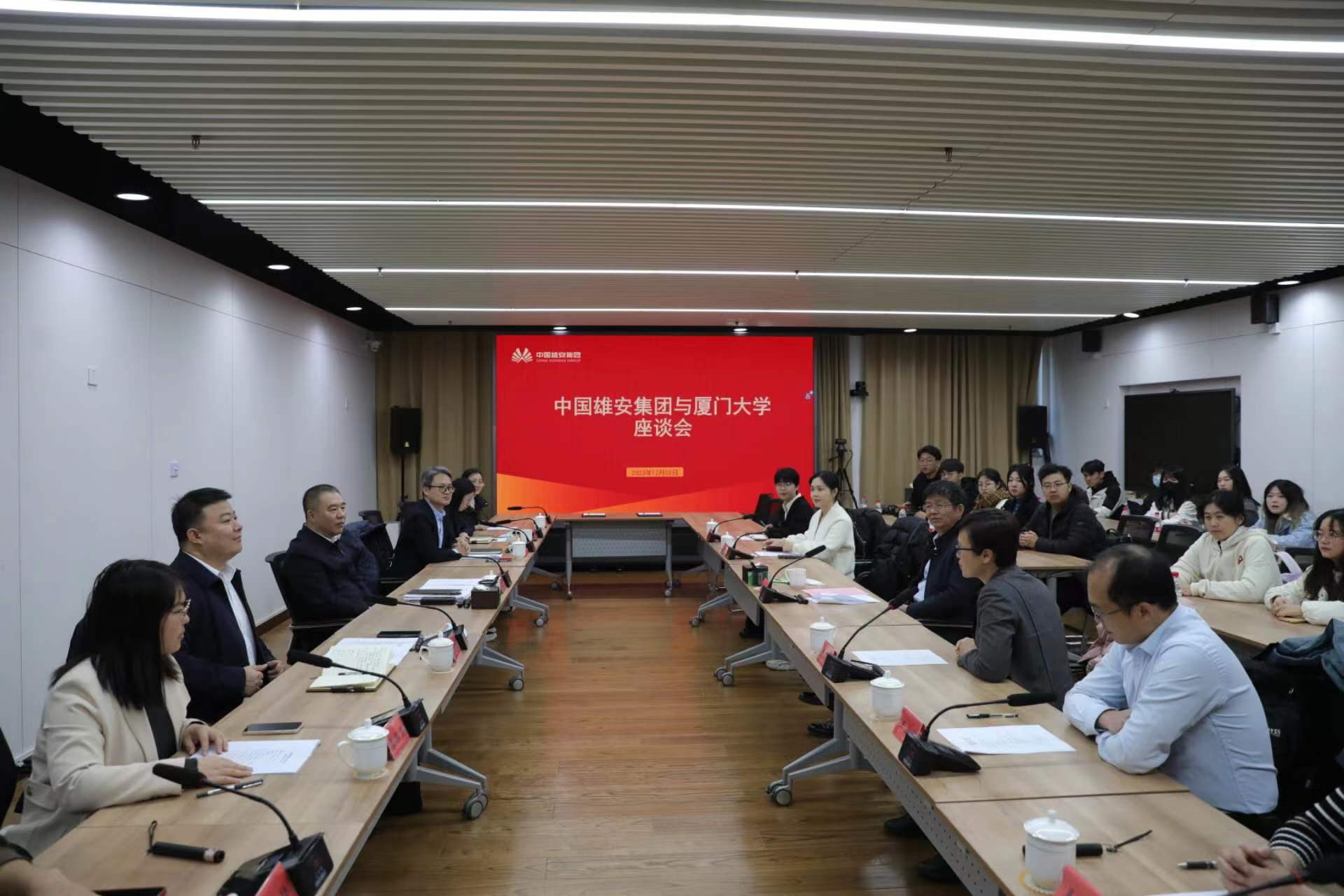 签约授牌仪式上,双方就学生就业实习、人才联合培养、校企深度合作进行了座谈交流。徐进功认真倾听了解了6年来雄安新区的规划建设成果,并对我校校史校情、专业优势、毕业生基本情况进行了全面介绍,希望能以此次共建活动为契机,进一步推动校企双方人才合作,为雄安发展的“千年大计,国家大事”贡献厦大力量。我校校友、雄安集团法律合规部部长兼雄安基金执行董事韩伟分享了在雄安集团的奋斗历程,希望能通过提供就业实习岗位、组织学生开展寒暑期社会实践等方式,吸引更多厦大学子在雄安新区这片创新高地和创业热土上创造出更大价值、成就更大梦想。