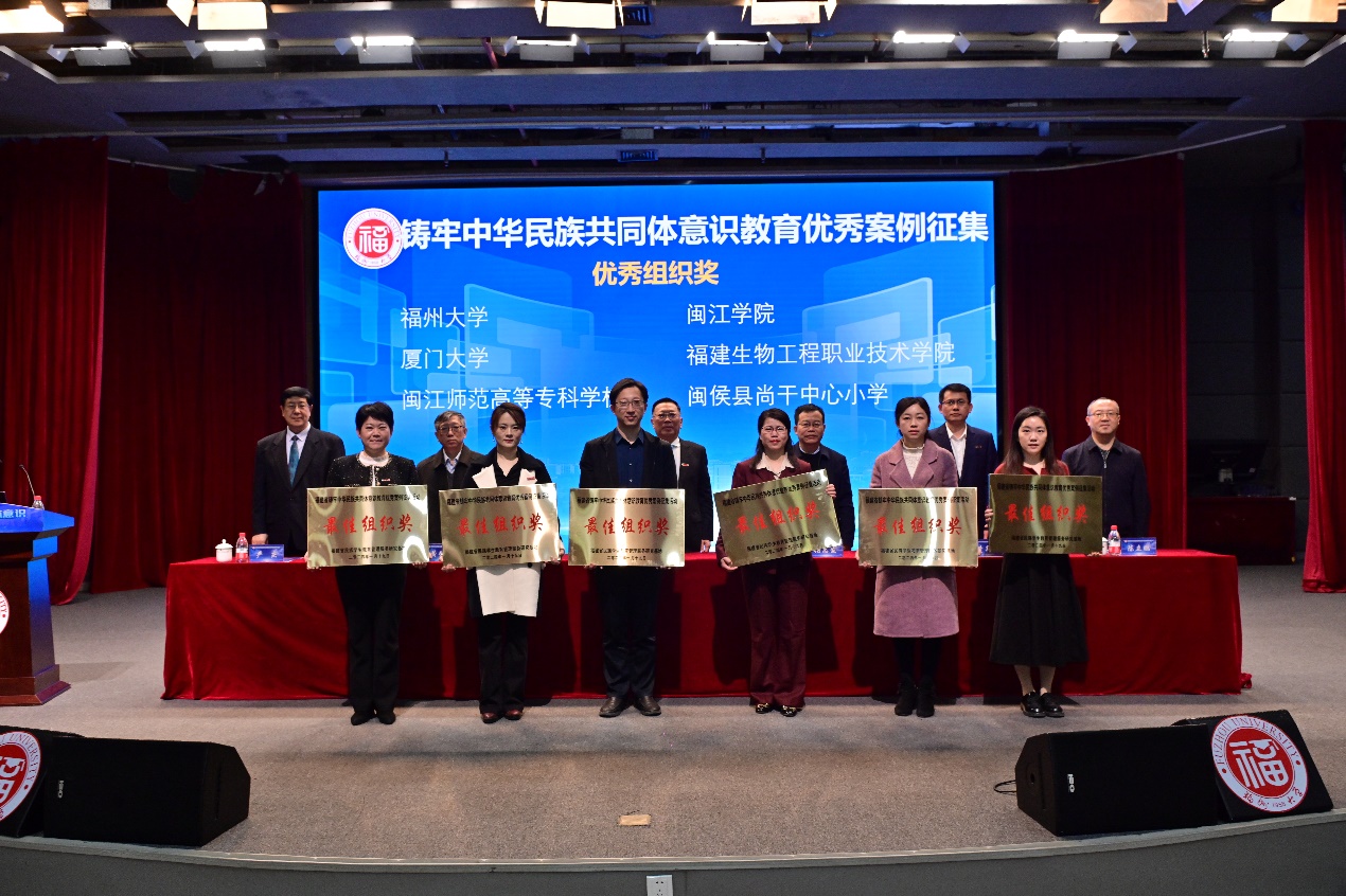 会上,表彰了荣获铸牢中华民族共同体意识教育案例征集优秀组织奖的6所学校以及优秀案例获奖者。我校获得“最佳组织奖”。在优秀案例评选中,我校学生工作部王骥洲报送的《聚焦“三个层次”,铸牢中华民族共同体意识》获得一等奖;经济学院蔡庆淞报送的《高校跨越山海联合实践,数字经济赋能农户增收》获得二等奖;管理学院揭上锋报送的《打造“石榴籽”骨干计划,在实践中铸牢中华民族共同体意识》获得三等奖。