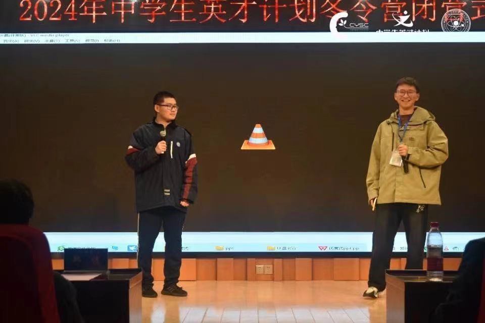 冬令营活动还邀请了往届英才计划优秀学员为新学员分享经验,指明前进的方向。线下,来自清华大学的2020级英才计划物理学科学员缪星辰和来自厦门一中的2023 级英才计划物理学科学员许珂语作为朋辈导师,他们结合自身科研经历与研究成果,以同龄人的视角进行经验分享。来自上海交通大学的2019级英才计划物理学科学员蓝天,2020级英才计划物理学科学员赵博,来自暨南大学的2020级英才计划物理学科学员邹一鸣,来自吉林大学的2021 级英才计划物理学科学员宋泽宇与线上同学进行了经验分享。